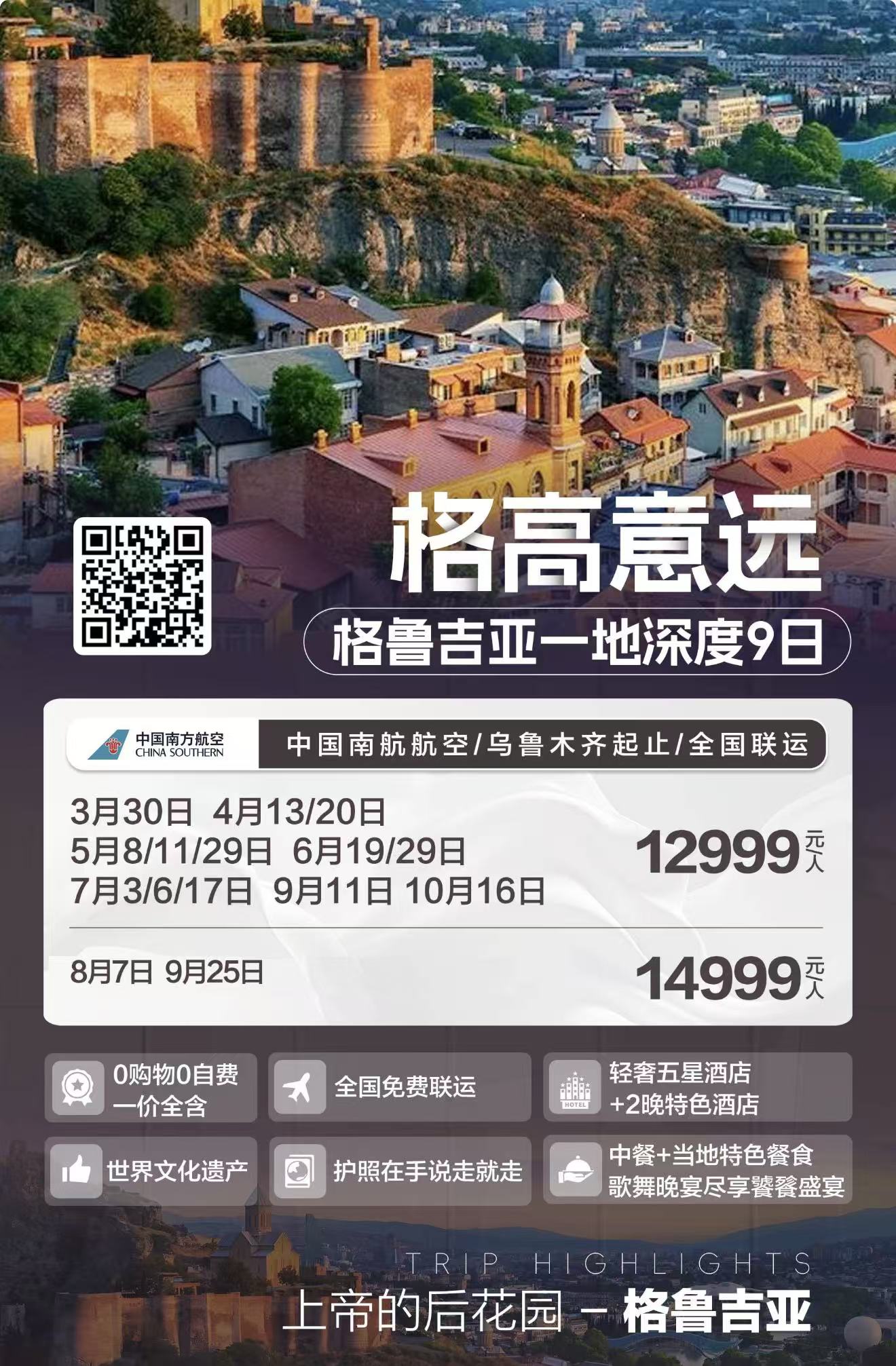 【5-10月CZ格高意远】格鲁吉亚一地深度9日 FJY