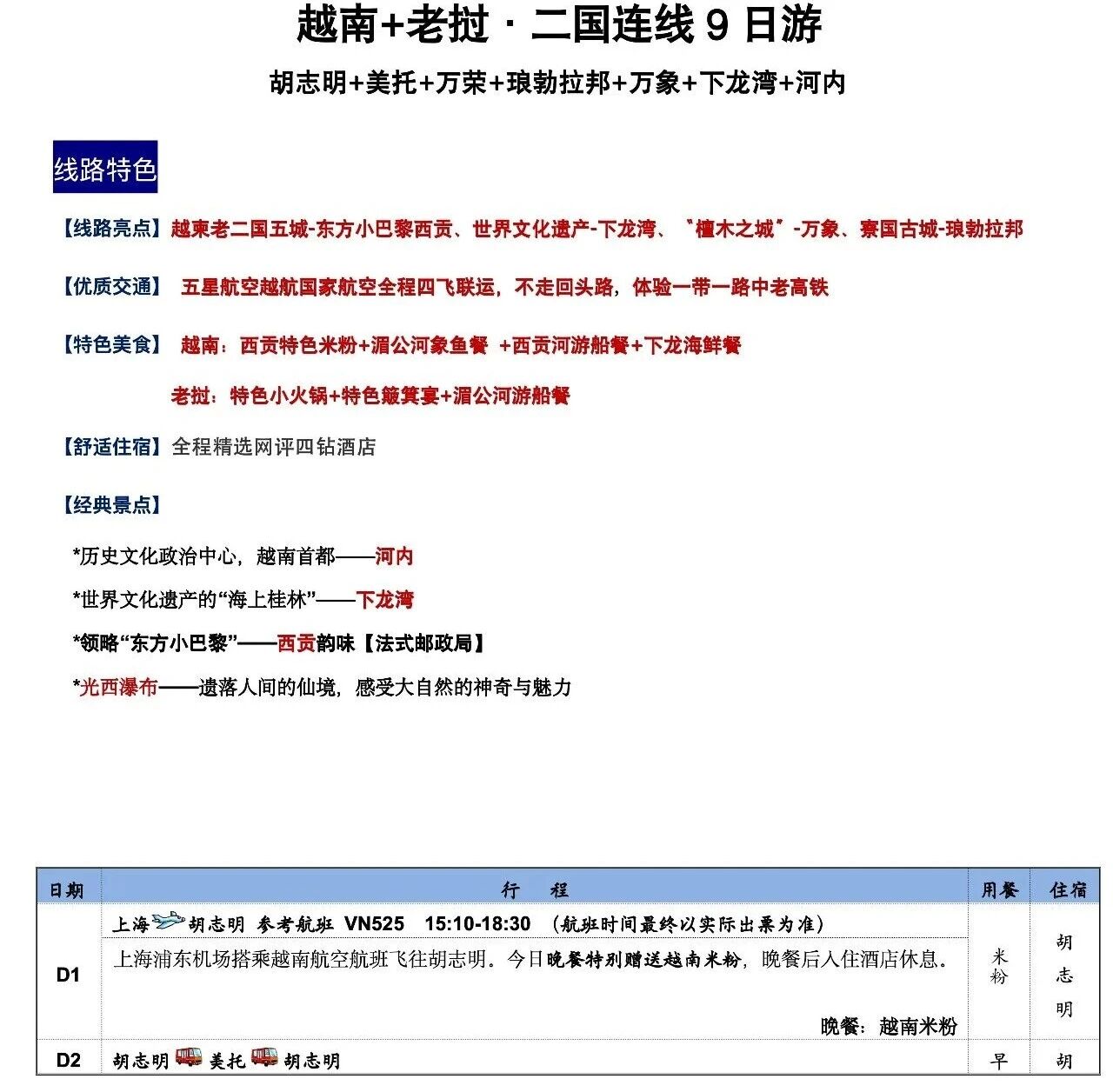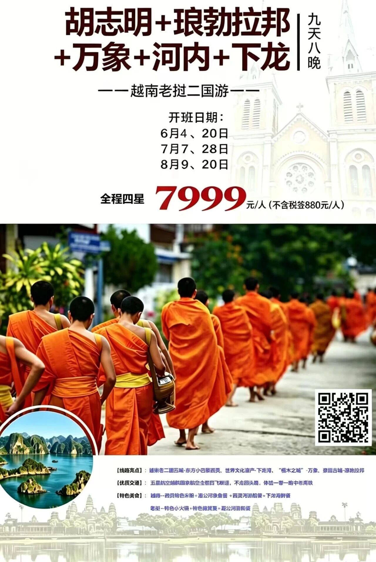 <越南·老挝 二国连线> 胡志明、拉勃拉邦、万象、河内、下龙9日 -XWY