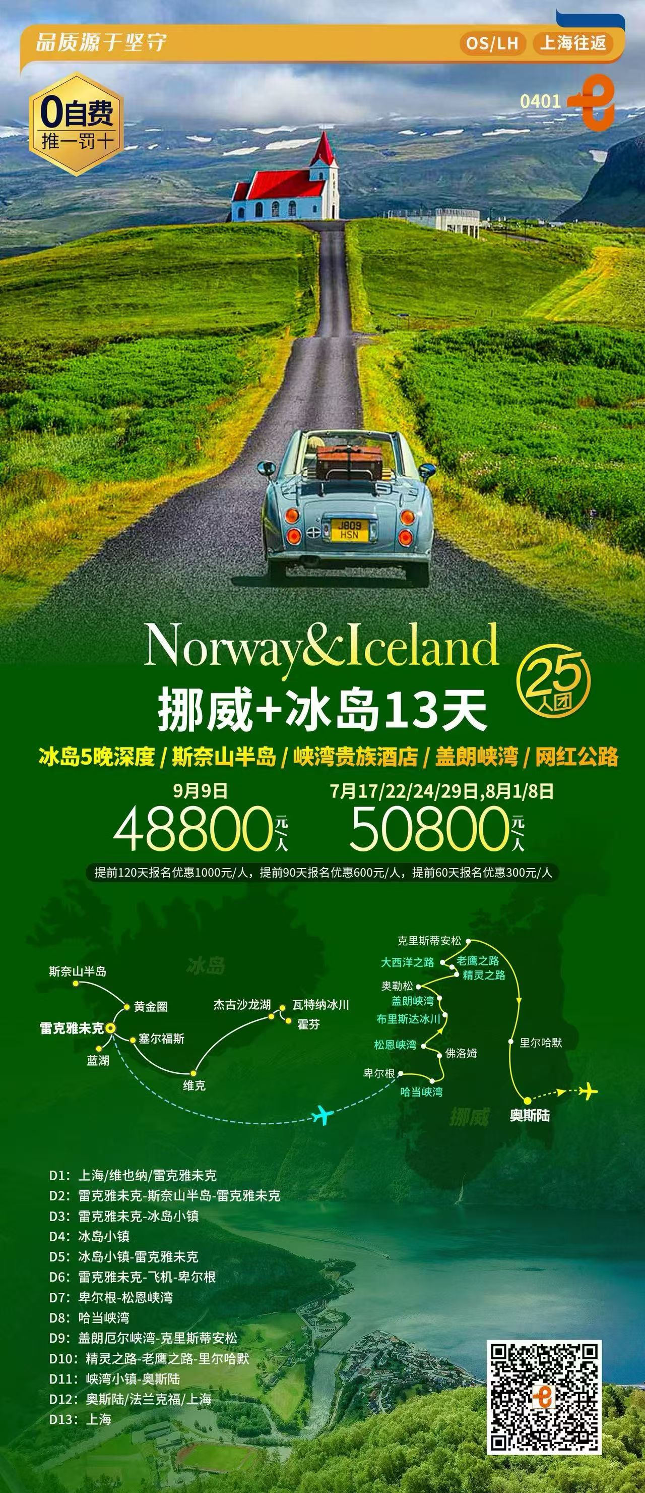 【7-8月】4钻精品-挪威+冰岛+三大峡湾+斯奈山半岛 11晚13日 FJY