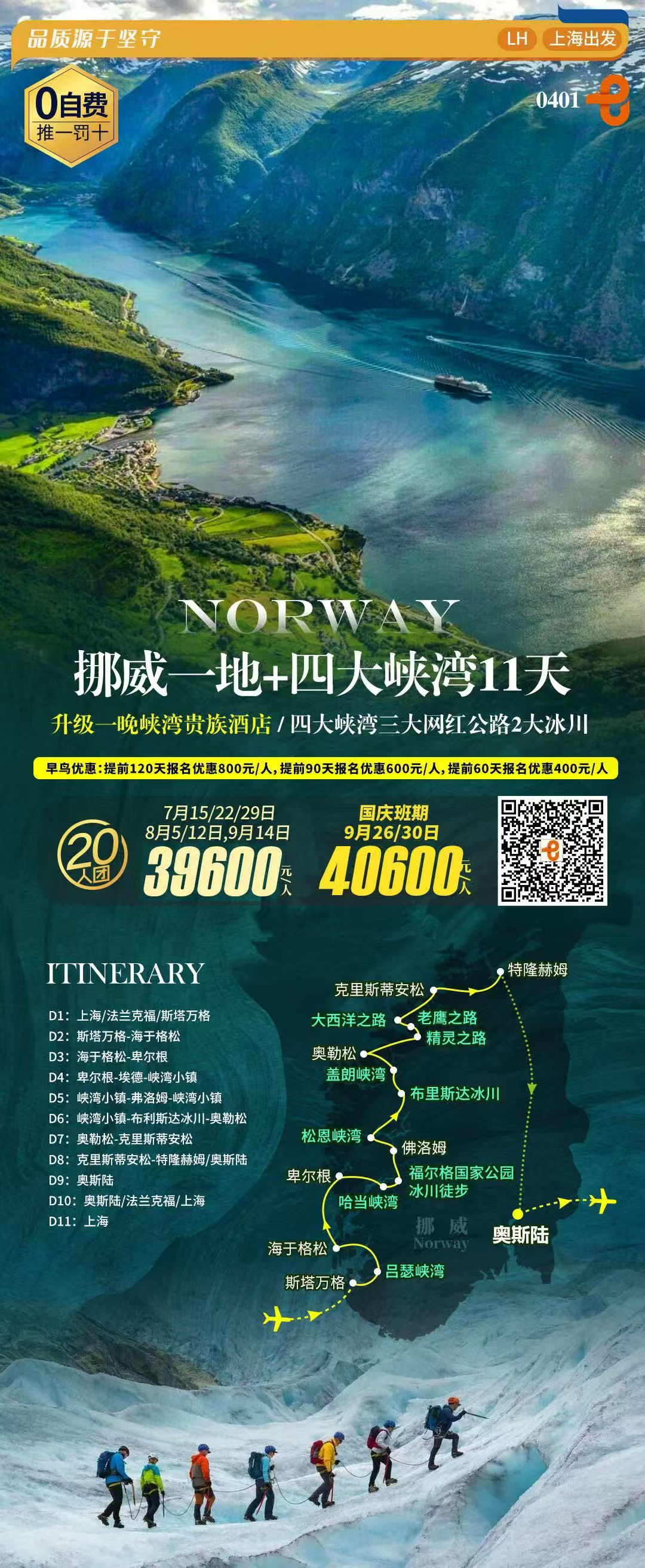 【7-9月】4钻精品-挪威+四大峡湾 8晚11日 FJY