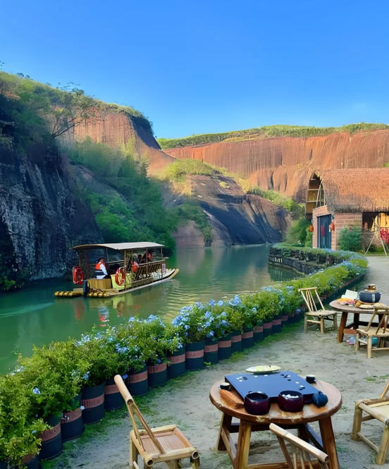 早餐后乘车前往【九龙水寨】 探秘之旅全程 4.8 公里,游览时长约 30 分钟。游客乘坐竹筏从九龙水寨寨门进入,山沿水走,水随山转,水道由宽至窄,曲折蜿蜒,每过一道弯就展现出让人惊喜的美景。最后从鲤鱼嘴出来,经过千年悬棺,完成游览环路,回到大面洲码头。时而小桥流水,时而峡谷林立,穿梭在丹霞地貌之间,这种感觉真的太奇妙了!