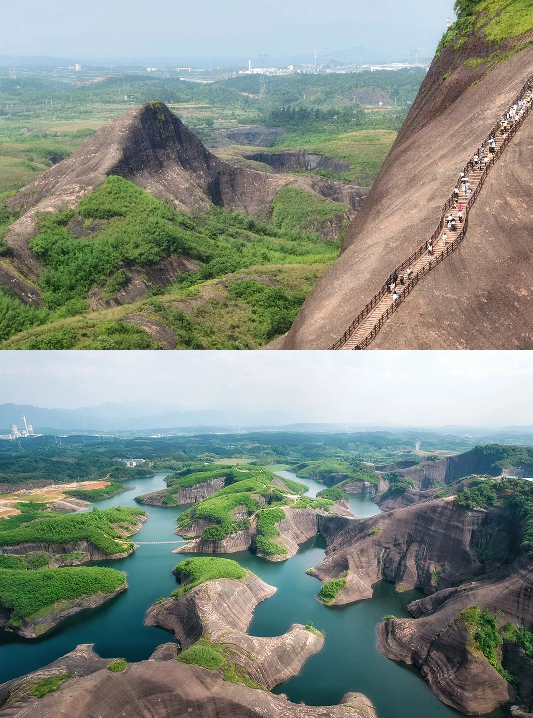 早餐后,乘车前往【高椅岭风景区】(开放式景点,游览时间约2小时):高椅岭位于湖南省郴州市苏仙区境内,郴江、东江交汇于此,形成享誉江南的翠江风景带,以丹岩堡寨为特色,穿坦、洞穴为罕见,近年来备受驴友推崇,“简单”介绍,高椅岭丹霞地貌之“美”,不仅美在山水相融、树石相间、犬牙交错、大气磅礴、惊而不险,更美在墨绿色的“天池”环绕着一只在水面张牙舞爪的“巨蜥”。