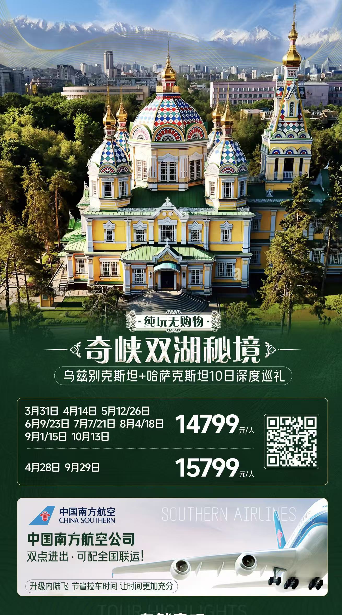 【5-10月CZ奇峡双湖秘境】中亚两国乌兹别克斯坦+哈萨克斯坦10日FJY