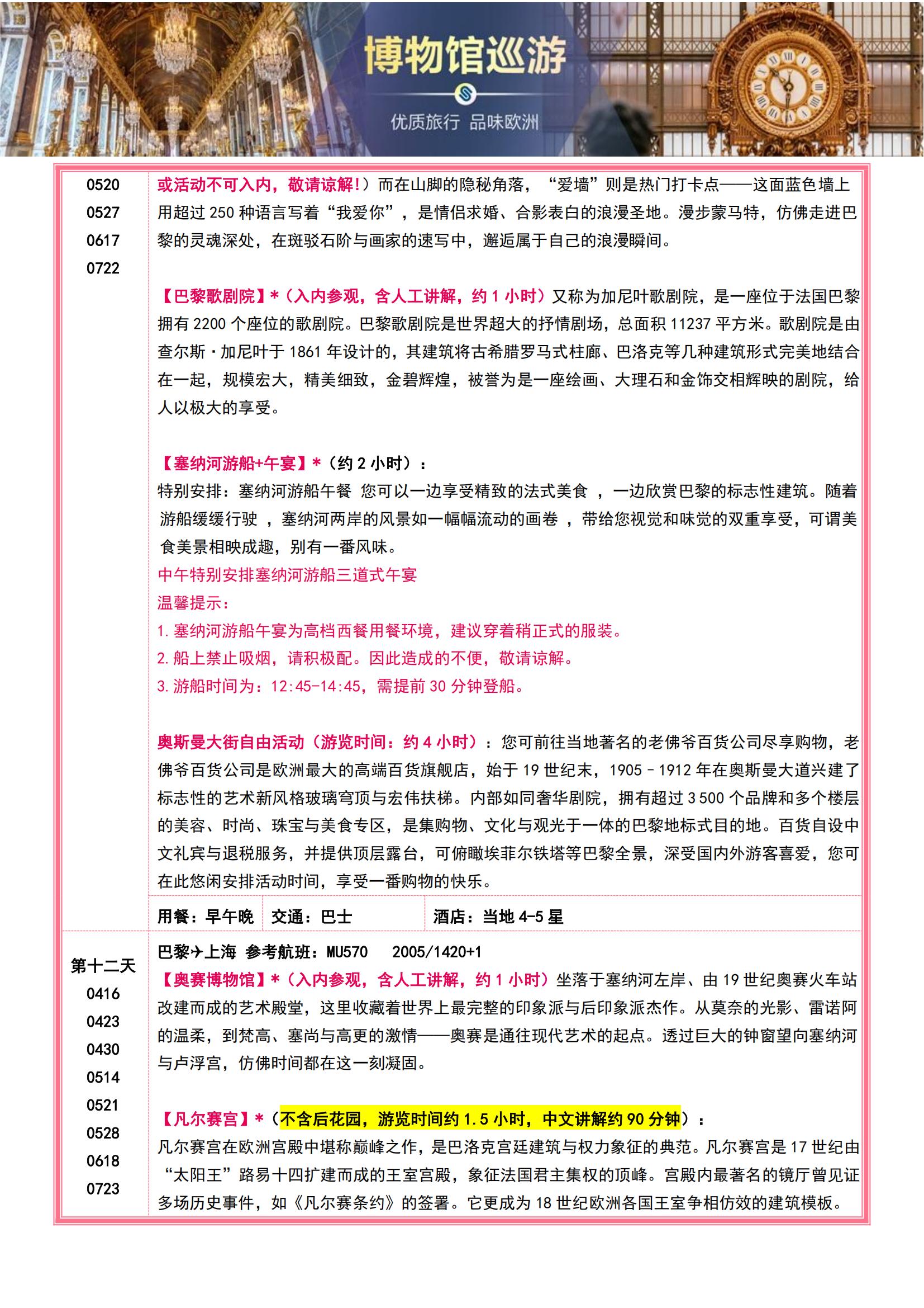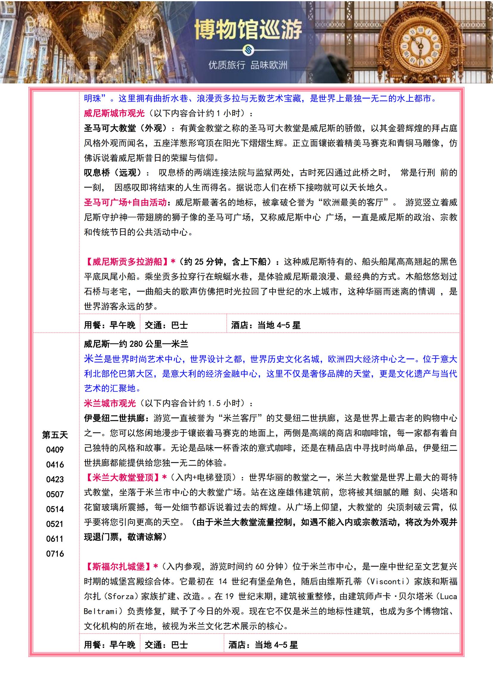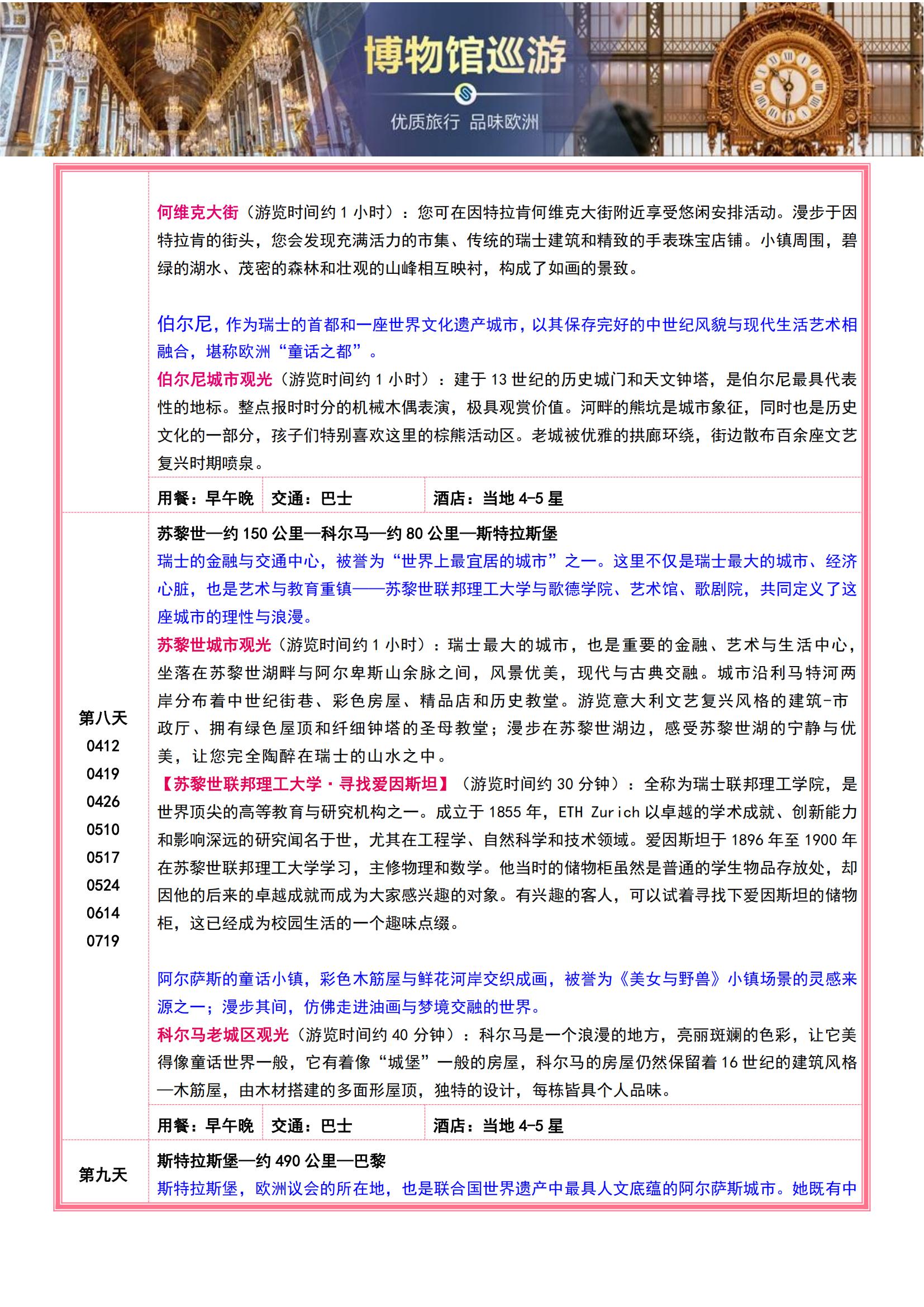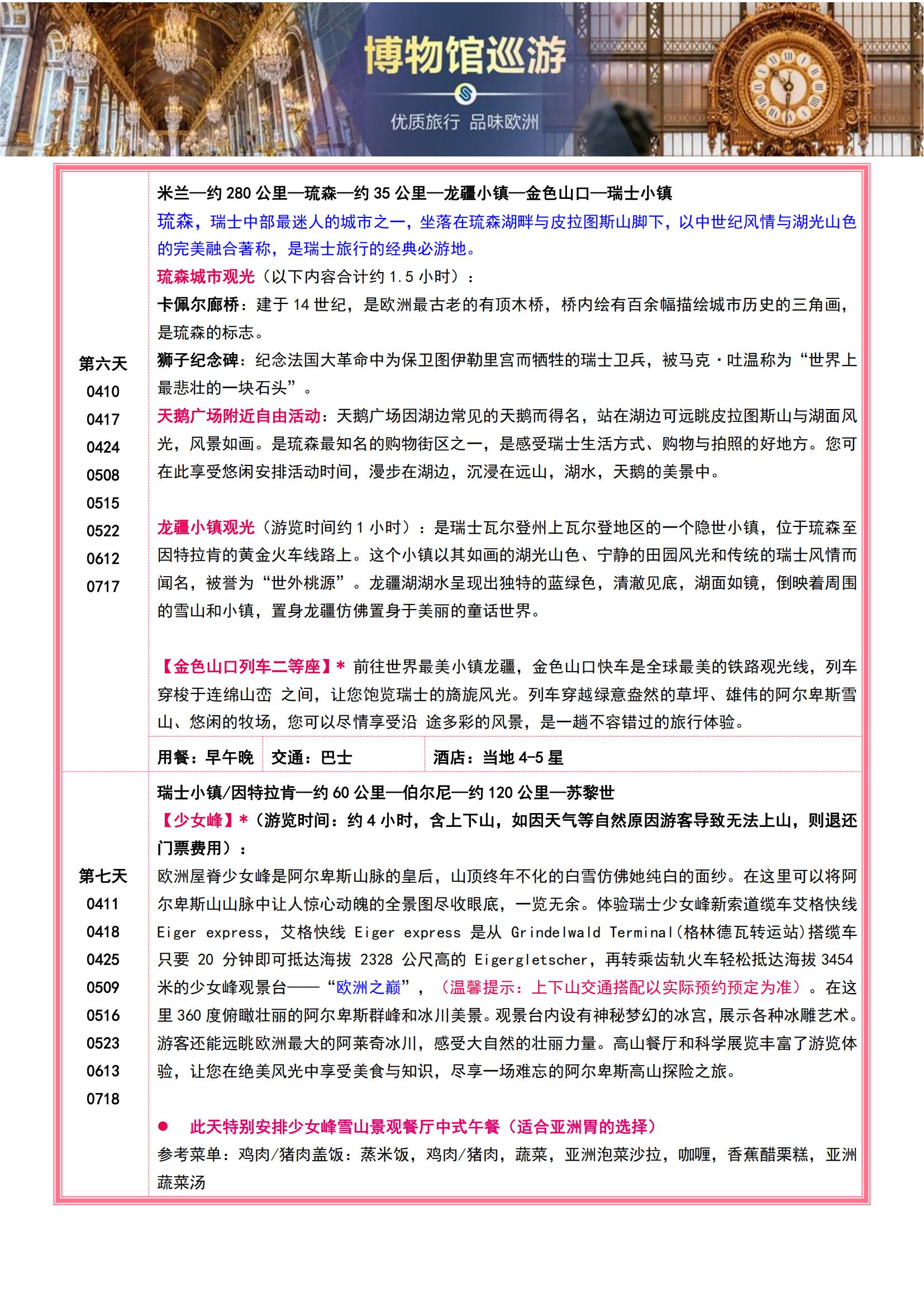 • 【4-7月博物馆巡游】法意瑞11晚13日(全程含餐+宫殿与博物馆的艺术长廊 +十大入内名馆全解锁专业讲解MU)SW