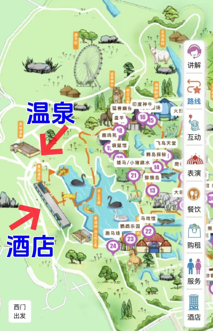 ▲门票:紫清湖森林温泉首道大门票1次、野生动物园1次(包含小火车,大马戏,海狮表演)其余景区二次消费均自理。