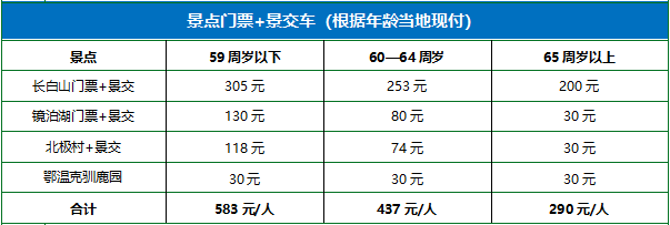开启极北之旅! DAY 1 上海浦东-长春-吉林 【住宿】👉吉林 【用餐】👉自 理 尊敬的贵宾欢迎您参加此次【长白望北】双飞8日之旅,请于出发当日提前120分钟抵达上海浦东机场三层出发大厅,办理登机手续后乘飞机前往长春,抵达后工作人员在出口处等候您的到来。接站后乘车前往吉林,抵达后前往酒店入住休息。 【接机服务】接机前1天以短信联系您说明次日接机事宜,接机人员在飞机落地时联系您,落地请开手机! 【酒店入住】每日14时以后,前台说明“北极星+姓名”办理入住,出示证件,押金自理。 【出团通知】出发前3天您将接收到出团通知书,告知司机或导游信息及酒店名称与地址,如未收到请及时联系报名处。 DAY 2 吉林市游-长白山 【住宿】👉长白山 【用餐】👉早 中 早餐后,开启旅程。外观【天主教堂】圣名“耶稣圣心堂”,是吉林省最大的教堂,也是中国最有特色的十大教堂之一。教堂为典型的哥特式建筑,主体由教堂和钟楼组成,平面略呈“十”字形。教堂正面的哥特式尖塔、精美的雕花,是拍照的绝佳背景,上午10点到11点,金色光线勾勒出建筑轮廓,照片色彩绝美。 参观【摇橹人】是吉林市的城市标志。它以“激流勇进”为核心寓意,塑造了一位船夫奋力摇橹的动态形象—身姿前倾、肌肉紧绷,橹桨划破水面的瞬间被永久定格,冬季雪后,雕塑被白雪覆盖,青铜与白雪碰撞出冷暖对比,搭配松花江的雾凇,宛如冰雪世界里的“奋进使者”。 车游吉林市标志性建筑“同一首歌”两次举办地【世纪广场】。游玩结束后,乘车前往长白山,抵达后前往酒店入住休息。 DAY 3 长白山北坡-敦化 【住宿】👉敦化 【用餐】👉早 晚 早餐后,开启旅程。乘车赴【长白山北坡景区】(不含景区门票+景区交通,根据年龄当地现付),抵达游客集散中心换乘摆渡车抵达山门换乘车环保车前往长白山主峰,俯瞰中国最深的高山火口湖【长白山天池】(天池开放与否,视天气和景区安排而定,旅行社出发前无法确知,因长白山属于套票游览,取消或无法游览任何一个景点无费用退)。天池是中朝两国的交界湖,是中国最深的高山湖泊,感受火山爆发后的壮丽美景,沿途的垂直景观带让你了解“一天有四季,十里不同天”的独特自然景观。 游览,东北地区落差最大的瀑布【长白瀑布】观赏中国海拔最高、温度最高的温泉,长白山温泉出水口【聚龙温泉群】最热泉眼可达82℃,它含有各种矿物质及微量元素,具有较高的医疗价值。游览电视剧《雪山飞狐》的外景拍摄地,风光旖旎的银环湖【长白山小天池】。 观与长白山小天池一路之隔,近年来新开发的景区【绿渊潭】四周密树茂林,环境优雅、娴静,双瀑布依山相伴,从20多米处飞溅而下,奔流不息,雅致独到。 游玩结束后,乘车前往敦化,抵达酒店后入住休息。 DAY 4 敦化-镜泊湖-哈尔滨-漠河 【住宿】👉空调火车硬卧 【用餐】👉早 中 早餐后,开启旅程。乘车前往被誉为“北方的西湖”疗养胜地【镜泊湖风景区】(不含景区门票+景区交通,根据年龄当地现付)是中国最大、世界第二大高山堰塞湖,由四千八百年前火山熔岩堵塞牡丹江河道形成,湖面平静如镜,“镜泊”之名便源于此。核心由百里长湖、火山口原始森林、渤海国上京龙泉府遗址三大板块构成,既藏自然奇观,又蕴历史底蕴。 游览中国第三大名瀑--【吊水楼瀑布】这里最特别的是“四季两景”的奇观。夏季,瀑布裹挟湖水奔涌而下,水雾在阳光下常现彩虹,与周边青山绿水相映成趣;冬季,水流凝结成高达 20 米的冰瀑,通体晶莹如白玉,成为北方冬日里的独特盛景。 若赶上好时机,你还能看到“瀑布跳水第一人”狄焕然的悬崖跳水表演,看他从瀑布顶端纵身跃入黑龙潭,感受人与自然碰撞的震撼。 游玩结束后,乘车前往哈尔滨,抵达哈尔滨后,乘坐火车前往漠河。 【参考车次】哈尔滨—漠河 K7041次(1820/1150+1)或K7039次(1718/1030+1) DAY 5 漠河-北极村 【住宿】👉北极村 【用餐】👉中 抵达漠河后,乘车前往北极村。【北极村风景区】(不含景区门票+景区交通,根据年龄当地现付)国家五A级风景区,中国最产,神奇天象,极地冰雪;北极村不仅是一个历史悠久的古镇,它逐渐成了一种象征,一个坐标,来最北体会最北的幸福。 前往参观【金鸡之冠广场】主题雕塑以“玺”为创作元素,上端采用了中华民族的精神图腾—“龙”的造型,代表了中华大地,象征着“天佑我中华国运昌盛”; 参观与天涯海角齐名的【神州北极碑】;游览中俄界江风光;沿江观赏对岸俄罗斯远东地区有浓郁的异域特点小村庄-【伊格那思依诺村】,外观【中华北陲第一哨】,中国人民解放军驻北极村边防某连队的中俄边境瞭望哨。徒步2.5公里游览【北极沙洲】;【中国最北一家】拍照留念,参观【最北邮局】,来到此处买纪念品和明信片,写上祝福的话语,再让工作人员盖上最北邮局的戳,从中国最北的地方寄回家,给自己的旅途添上一抹独特的意义吧。游览结束入住北极村。 DAY 6 北极村-漠河-哈尔滨 【住宿】👉空调火车硬卧 【用餐】👉早 中 早餐后,前往【鄂温克驯鹿园】(不含景区门票+景区交通,根据年龄当地现付)园内的驯鹿活动区占地宽广,可容纳上千只驯鹿同时自由活动。这里的驯鹿品种为鄂温克驯鹿,它们性情温顺,游客可以购买苔藓喂食驯鹿,感受它们呼出的温热气息,体验被它们柔软舌头轻舔的感觉,还可以抚摸驯鹿珊瑚般