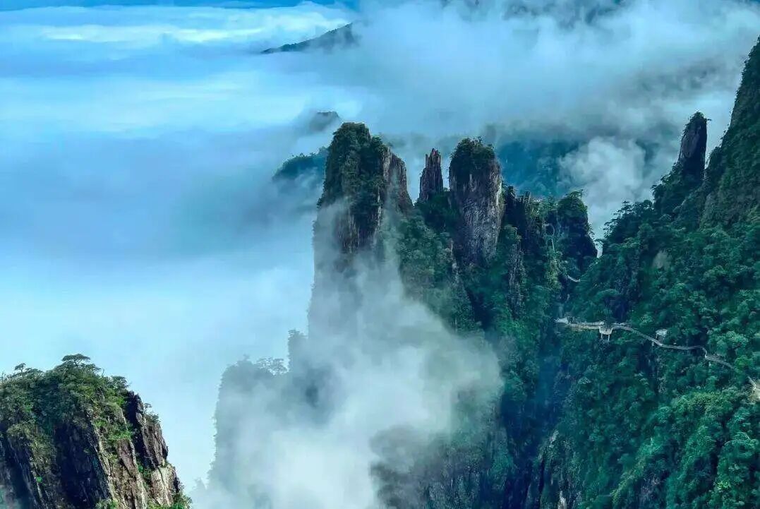 ◈午餐后前往莽山五指峰景区(游览时间约3.5小时), 抵达后乘全国单线最长索道缆车前往莽山新十景【五指峰】索道全长3.7公里,全国单线早长;每小时客运量可达2000人,全国功率最大;全球索道极限高差,达1000米,创造了全国及至全球索道领域的多项第一,堪称“世界一流,中国第一”五指峰索道,上下穿梭,一索飞渡,腾云驾雾,仅需十几分钟,就到五指峰核心景区,莽山新十景一一亮相在你眼前。