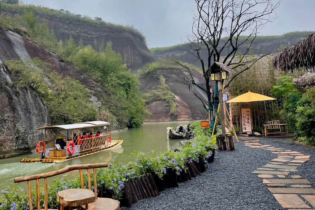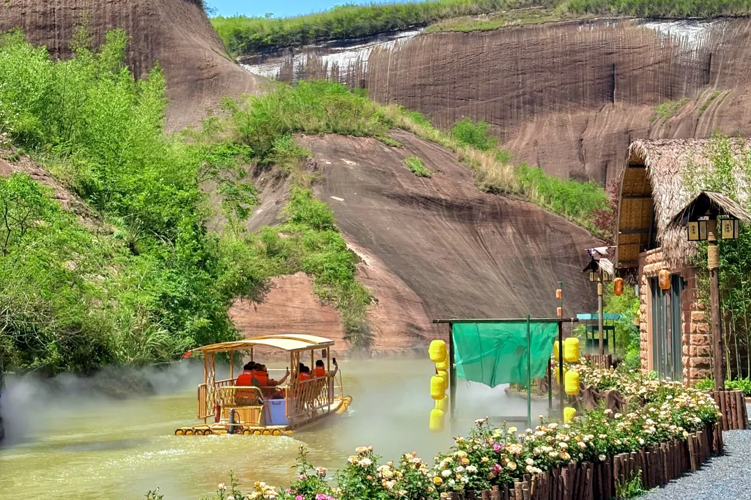◈登【逍遥洲】(游览时间1小时)古意盎然的景致:岛上点缀着茅草屋,您可以在这里彻底放松。或是在茅屋茶社小坐,或是静静观赏山水,将这片丹霞碧水、古意诗情深深地刻在脑海里。