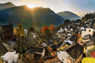 【天街】民居围绕水口呈扇形梯状错落排布,U形村落带您体验南方的“布达拉宫”。徽式商铺林立,前店后坊,一幅流动的缩写版“清明上河图”。家家户户屋顶晒盘云集,绘就出一幅“晒秋人家”风情画。