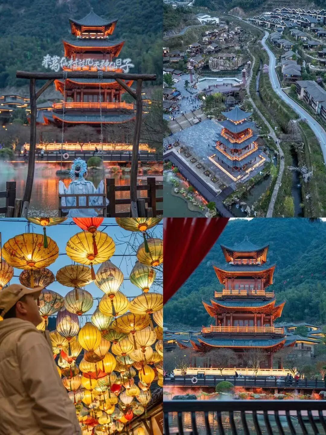 前往【葛仙村景区】(车程约2小时),游览【葛仙村夜景】葛仙山的夜景如同一幅水墨画,夜幕降临,华灯初上,整个山间都沉浸在柔和的灯光之中,仿佛被披上了一层神秘的面纱。山顶上,灯光璀璨,五彩缤纷,照亮了夜晚的山峦,让人仿佛置身于一个梦幻的世界。夜色中,一弯月牙0挂在空中,如同被水冲刷过一般,显得格外明亮。山峦叠翠,云雾缭绕,仿佛仙雾缭绕,增添了一份神秘与宁静。月光下,一片片的云朵像一群群银羊在游移,增添了一份生机与活力。后入住酒店。