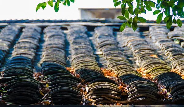 屋顶上的瓦片落满了枯叶,也许平时从来都不用清扫。