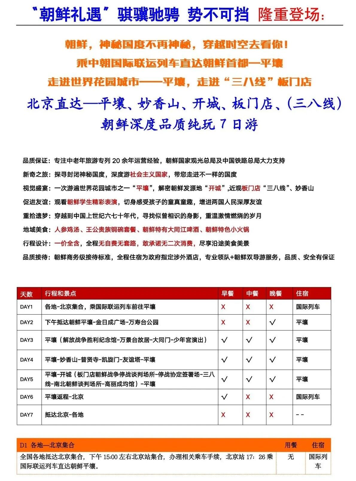 <朝鲜礼遇>中朝国际专列 直达平壤 平壤、妙香山、开城、板门店7日 纯玩团 - HYH