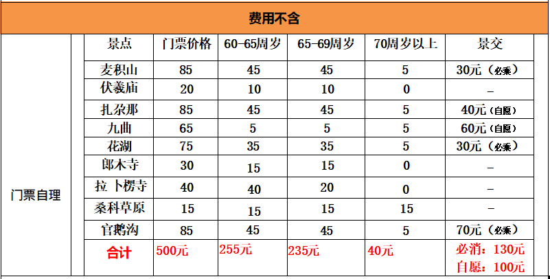 伏羲庙-天水古城积山石窟-官鹅沟-腊子口-扎尕那 九曲黄河第一湾-花湖-郎木寺-拉卜楞寺-兰州 ▶ 全程品质纯玩0购物 ▶ 全程入住当地三钻舒适酒店 ▶ 全程豪华2+1保姆车 ▶ 藏式土火锅 西北小吃宴 虫草花鸭汤 ▶ 真正深入藏地核心区域,感受最纯正的藏地文化 【班期&价格】 价格:2999 班期:4月24/25/26/27日 儿童:999元(含当地大巴车费.导游.正餐。其余自理) 全程单房差520元/人 -------------------------------- 价格:3099 班期:5月5/7/9/12/14/16/18/20/23/25/26日 儿童:1099元(含当地大巴车费.导游.正餐。其余自理) 全程单房差610元/人 -------------------------------- 价格:3199 班期:6月2/4/6/8/10/13/15/17/19/22/24/26日 儿童:1199元(含当地大巴车费.导游.正餐。其余自理) 全程单房差690元/人 精彩旅行从这开始 D1/2 接站-伏羲庙-天水古城 【用餐】:晚 【住宿】:天水 根据具体车次时刻乘火车前往天水. 【伏羲庙】 (不含首道门票,游览约 1 小时)原名太昊宫,俗称人宗庙, 是中 国西北地区著名古建筑群之一,占地面积 13000 平方米,始建于明朝;伏羲庙临街而建, 院落重重相套, 四进四院,宏阔幽深。 由于伏羲是古史传说中的第一代帝王, 因此建筑群呈宫殿式建筑模式,为中国规模最大的伏羲祭祀建筑群。整个建筑群坐北朝南,牌坊、大门、仪门、先天殿、太极殿沿纵轴线依次排列,层层推进,庄严雄伟;每年在农历正月十五日伏羲诞辰日和农历五月十三日(传说中龙的生日)举办规模 盛大的祭奠仪式, 吸引众多海内外炎黄子孙前来拜祭! 天水古城( Tianshui Ancient City ),又称天水西关古城,是天水古城西关片区综合保护与利用项目,位于甘肃省天水市。是西北地区现存规模较大和保存较完整的明清时期居民院落群, 区域内有众多的古街、古巷、古树、古民居。这些古民居均为明、清时代和民国时期的建筑遗存, 时代风格鲜明,文化特色浓郁,是古城现存的珍贵建筑文化遗产。 ❤❤温馨提示 1. 接机人员于出团前一天将会与您电话或短信联系,并与您确认您的航班信息或火车车次时刻,请保持所留电话的畅通。 2. 请您提供姓名和个人有效证件在酒店前台办理入住,按照国际惯例,入住时间是下午 14 点后,具体入住时间需视当时的用房情况来定。(办理入住时需交押金,金额以酒店前台为准,退房时如无物品损坏或其他消费,押金如数退还)。 3. 来西北旅游,早晚温差较大,建议带好御寒衣物,气候干燥,一定要多喝水多吃水果。 D3 天水— 麦积山石窟—宕昌 【用餐】:早/中/晚 【住宿】:宕昌 早餐后从天水前往麦积山! 【麦积山石窟】(不含首道门票,不含 电瓶车,游览约 3 小时)世界文化遗产、东方雕塑陈列馆、中国四大佛教石窟之是西北最著名的石窟之一, 因山形酷似麦垛而得名,故名麦积山。现存窟龛 194 个,泥塑、石胎泥塑、石雕造像 7800 余尊,壁画 1300 余平方米。它以其精美的泥塑艺术闻名中外,被誉 为“东方雕塑馆”。 行程结束后 ,前往宕昌酒店休息。 ❤❤温馨提示 1. 景区内有贩卖香火的商贩请不要随意购买。 2. 避免暴露的服装,建议穿长袖衣裤,以示对宗教场所的尊重。 甘南地区热水供应有限,海拔较高,不建议洗澡、洗头发会使毛细血管扩张,增加耗氧量,如果不注意还会引起感冒、高反。 D4 官鹅沟—腊子口—扎尕那 【用餐】:早/中/晚 【住宿】:迭部 【官鹅沟旅游景区】 (不含首道门票,参观约2.5小时, 由于官鹅沟和娥嫚沟门票是一票通用,景区内景观一致, 行程只含一个沟不指定, 门票将不会产生退费,望周知)景区分为官珠沟和鹅嫚沟,有九寨归来不看水、看水就看官鹅沟之美誉;境内13个大小不等、形态各异的湖泊,尤如一串绿色的珍珠镶嵌在沟内,湖水清澈透底, 随湖底地貌高低呈不同颜色,那些倒映在湖中的古树象一条条巨龙卧在湖底;蓝天白云和青山古树, 映入湖中,使天地浑然一体,湖泊星罗棋布,青山绿水相互倒影,十几道瀑布风情万种;鹅嫚沟景区: 长达10多公里色彩斑斓的湖泊 ,松柏茂密的原始森林,最深处为高山草甸和终年不化的雪山;沟内山岭重叠, 幽谷纵横,青山碧水,奇峰怪石,瀑布飞溅,草甸雪山,湖泊激流,古木参天,悬崖峭壁上有许多形态各异,妙趣横生的岩石构造 ,被专家誉为最有观赏价值的地质公园。 【腊子口战役遗址】(每周一闭馆,参观约0.5小时,如闭关自行取消此景点参观,无替换景点无费用可退),腊子口是川西北进入甘肃的唯一通道,是甘川古道之“咽喉”。整个隘口长约30米,宽仅8米,两边是百丈悬崖陡壁,周围是崇山峻岭,抬头只见一线青天。水流湍急的腊子河由北向南穿越隘口,地势十分险要,易守难攻,自古就有“天险门户”之称。 【扎尕那景区】(车程约83km ,约1.5h),(不含门票,游览约3小时)这里是一座完整的天然石城,其地形地貌既像一座规模宏大的巨型宫殿,又似用岩石修筑的一座完整的古城,堪称自然奇观。 山下的村庄房子相连, 绵延着小麦和青稞的梯田, 巨大的石灰岩山染上晨曦的金色,仙境般的神仙雾气弥漫在山谷村落间。 行程结束后, 当天前往迭部酒店休息。 ❤❤温馨提示 1. 甘南地处青藏高原边缘,平均海拨在2000米以上,天气多变,一定要准备好防寒衣服及防晒用品。 2. 进入藏区要尊重民风民俗,遵守寺院规定,不要穿过于暴露的服饰,看到藏族小朋友不要摸头顶。 甘南属于高海拔地区,请注意休息,沿途大草原不能随意停车,请遵从导游司机意见。 D5 迭部—九曲黄河第