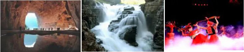 抵达恩施后前往游览【腾龙洞风景名胜区】(国家AAAA级景区)(车程2小时,游览约2.5小时)(不含景交车22元/人必须自理,不含电瓶车10元/人自愿自理):距湖北利川市城区6公里,是国家地质公园,景区总面积69平方公里,集山、水、洞、林于一体,以雄、险、奇、幽、秀而驰名中外。腾龙洞属中国目前最大的溶洞,世界特级洞穴之一。1989年,湖北省人民政府审定为省级风景名胜区,1999年被命名为全省爱国主义教育基地,2005年被国家级权威刊物《中国国家地理》评为“中国最美的地方”、“中国最美六大旅游洞穴——震撼腾龙洞”。欣赏集山、水、洞若观火、林、石、峡于一体,感受卧龙吞江的博大气魄,观赏洞中有山、山中有洞、主洞支洞互通、水洞旱洞相连的奇特景观,后欣赏大型原生态土家族情景歌舞“夷水丽川”,感觉高科技与旅游完美结合、超越想象空间的激光秀。(景区安排有激光秀和歌舞表演,疫情期间可能会根据情况增减表演项目,以景区实际安排为准)。