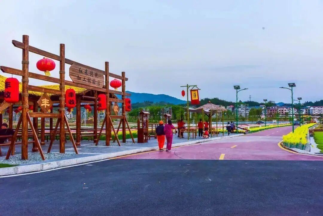 早餐后前往【袁梦小镇】依托红米科研基地打造的袁梦小镇,毗邻风景秀美的赣州市石城县4A级通天寨景区,占地600亩,通过挖掘袁隆平文化,发展乡村旅游带动乡村振兴,整个项目的创意设计围绕:袁篇、梦篇,2个篇章,6大板块,23种业态组成。走进袁梦小镇,你可感怀一番“春赏油菜夏品荷、秋观稻浪冬煮酒”的惬意,梦回一场抵至心灵深处的悠然自得时光。其中的一个区域主要发展红米产业融入火车元素打造红米科普基地建有袁梦小镇标识建筑网红桥、叠水坝戏水平台仿真铁轨、仿真小火车、红米稻穗灯红米加工体验园、红米知识科普园等。
