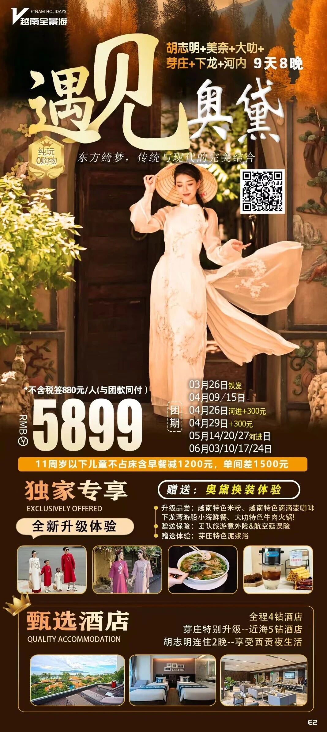 <遇见奥黛-(胡进河出)>胡志明、美奈、大叻、芽庄、下龙、河内9日纯玩团0购物 - HY