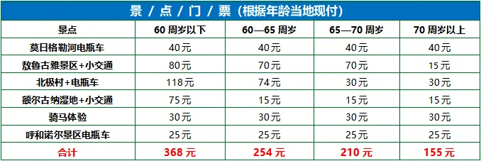 2.入住北极村景区内,电瓶车30元必消,为方便游客有时可以大巴车直接开进景区,但是电瓶车也需要支付给景区,敬请知晓。