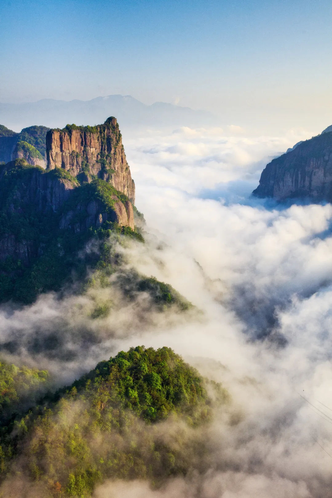 神仙居景区地质地貌独特,以雄壮、险峻、奇崛、幽深、清秀、神秘著称,境内奇峰险崖、绝壁天坑、流泉飞瀑、云海雾涛、丛林百态、景象万千,构成气势恢宏、如梦如幻的山水画卷。