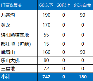 4. 景区小交通(1)黄龙上行索道80+下行索道40+定位耳麦30+观光车20+保险10