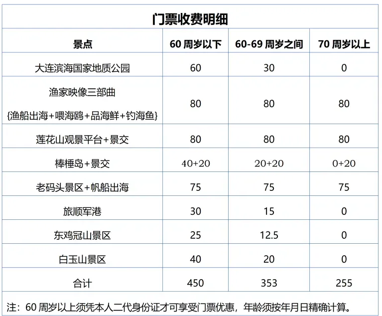 20人精品团 上海自组 成人2699元/人 房差680元 开班日期:4月9日/16日 成人2899元/人 房差790元 开班日期:5月7/14/21/28日 成人3299元/人 房差960元 开班日期:6月4/11日 往返航班 国航CA8954 上海浦东-大连 10:40-12:30 国航CA8911 大连-上海浦东 15:55-18:05 【儿童接待标准 12周岁以下】 含车费+导服+正餐+往返机票;不含门票+住宿+早餐;产生需自理! 以上报价不含机建燃油费140元/人(根据最新政策,按时支付,多退少补) 游览行程 Day1:上海-大连 ●上海乘飞机赴浪漫之都--大连(航班:国航CA8954 10:40上海浦东起飞--12:30抵达大连机场),抵达后入住酒店休息。开启您的大连之旅,发现大连老故事,寻找大连特色美食~~ PS:尽享自由时光·自由探秘&寻迹山海·跟团亦自由 ★★★:今日无行程,一切由您随心所欲。您可以尽情自由体验滨城----大连的魅力! 【关于接机】:接机为司机接站,车上无导游人员。 【关于导游】:导游会在出发前一天下午电话联系你,和您再次确认出发航班或车次以及接站事宜,请您务必保持电话畅通并留意查看信息。 【关于酒店】:酒店办理入住的时间一般为当日中午14:00点以后;如您抵达时间较早,可以将行李寄存在前台。因办理入住时无人陪同,需请您自行支付房卡押金。自由活动期间,无车导服务。 住宿 大连四钻酒店 餐饮 敬请自理 Day2:大连-金石滩 ●酒店内享用早餐。 ●乘车前往5A级国家级地质公园---【金石滩国家旅游度假区】(车程约90分钟)。金石滩三面环海,冬暖夏凉,气候宜人,凝聚了3-9亿年地质奇观,有“神力雕塑公园”之美誉。 ●游览【大连滨海国家地质公园】(游览时间约2.5-3小时),这里的礁石被大自然雕琢成千姿百态的天然艺术品,这些巨石有的形似石猴观海、有的像大鹏展翅,还有的酷似贝多芬的头像,它们大多立于海岸,也是摄影取景地,景区主要包括【恐龙园】、【南秀园】、【鳌滩园】三大景群。在恐龙园景群中则有“贝多芬头像”石,还可走上“恐龙探海”巨石的肩头遥望大海;南秀园景群中能看到“大鹏展翅”、“刺猬觅食”等形象巨石;而鳌滩园景群中则有镇滩之宝--龟背石。 小贴士:景交10元/人/趟自理,非必消,自愿购买! ●【渔家映像三部曲▪亲海游】(游玩时间约1小时)乘坐渔船出海,自由垂钓,体验海滨渔家风情! ★【出海喂海鸥】,渔民会模仿海鸥的声音,呼唤海鸥到达渔船附近喂食,这时可以与海鸥近距离接触,拍照,摸摸它的羽毛看它在海水中嬉戏。 ★【品海鲜】海上小屋外出现了一个胖子,这时候喊“胖子,我爱你”!可爱的胖子送给出一盆香喷喷的海鲜,将吃完的海鲜壳扔到海里,像一朵朵花一样。 ★【海上垂钓】俗语说“食不如钓”,就是说吃鱼的感觉远不如钓鱼的感觉来的惬意与满足;多彩的海底世界将通过您手中的鱼线有节奏的抖动;当水中的精灵变成您餐桌上的美味,您会真正的体验到劳作的辛苦和收获的喜悦。 ●【盛唐岚山古街】(游玩时间约1小时),这里的景色精致华美、古风古韵沉浸其中,犹如穿越一般畅游其中,总能发现惊喜,在这里,不仅仅是得益于建筑本身,还有云台水系,花草树木,标牌布置等,尽可能做到的是为了还原那段大唐盛世。让你置身于此,有一种梦回唐朝的体验感。 ●【十里黄金海岸】(游玩时间约1小时)这里避风朝阳,滩上细砂匀布,平缓洁净,海水清澈,波高适宜,弓形滩面被两侧突入海面的岬角抱住,地理环境得天独厚。 ●乘车返回大连市区,入住酒店休息。 住宿 大连四钻酒店 餐饮 早餐:中西自助早餐 中餐:海鲜大咖 50元/人/餐 晚餐:/// Day3:大连市游 ●酒店内享用早餐。 ●【莲花山360°空中观景台】(游玩时间约60分钟)塔上设有观景用的高倍望远镜,登临塔顶,莲花山观景台矗立在海岸之滨,是欣赏大连风光的第一制高点。该山海拔259.6米,这个高度听上去像是“爱我久留”,所以这里也是情侣之间山盟海誓爱的制高点,是为所爱的人登高祈福的最佳圣地。 ●车览【滨海路&北大桥】滨海路一侧是山,连绵起伏,树木蓊郁,一侧是海,水天相接,茫茫一片,四季皆有胜景。驱车行驶在这条公路上,沿途奇景叠出,美不胜收。 ●【棒槌岛景区】(游玩时间约90分钟)是一处以山、海、岛、滩为主要景观的风景胜地,三面环山,一面濒海;北面为群山环绕,南面是开阔的海域和凹凸不平的鹅卵石滩,名字的来历是因离岸500米远处的海面上有一小岛突兀而立,远远望去,极象农家捣衣服用的一根棒槌,是国家领导人避暑疗养胜地。 ●游览【渔人码头】(游玩时间约40分钟),这里有很多彩色的房子,有很多渔船停靠,体会一种经典欧陆怀旧式的休闲,一种港埠特有的市井文化,一种带着丝丝回忆的人文风情,每到整点时间大钟铛铛想起,提醒我们珍惜美好短暂的时光。 ●游览【大连老码头景区+乘帆船出海】(游玩时间约1.5小时,含乘船出海30分钟),大连唯一一处可以进入港区内,近距离看到、听到、感受到历史上曾经被三次命名为国际自由港的景区,没设老码头史迹馆,小剧场,电车博物馆,老码头物件展示区,观景台,百年灯塔,帆船,城市原点等网红打卡地;乘坐帆船出海,与海鸥一起嬉戏,观赏大连的海上风光。 ●【威尼斯水城】(游玩时间约60分钟)威尼斯水城是以威尼斯城为蓝本,贯穿200多座欧式城堡,“贡多拉”游走于欧式城堡间,置身其中,恍如来到异国他乡。 ●【南山风情街】(游玩时间约40分钟)是大连保存最完整的日式风情街区,街区