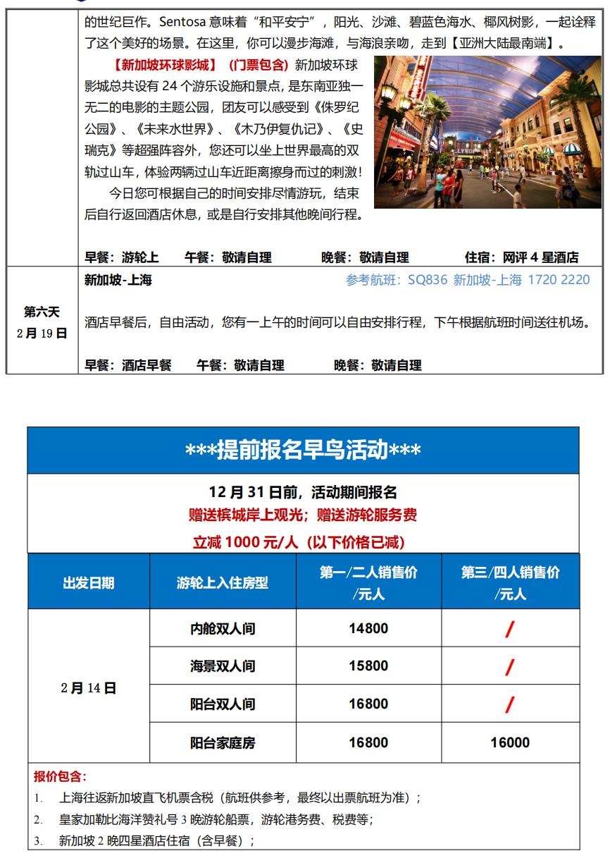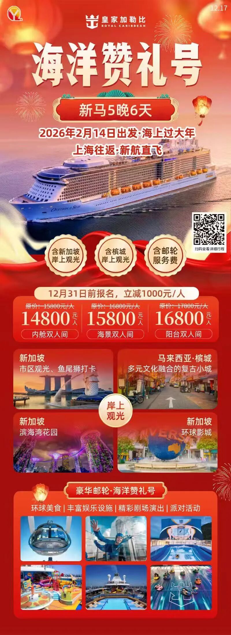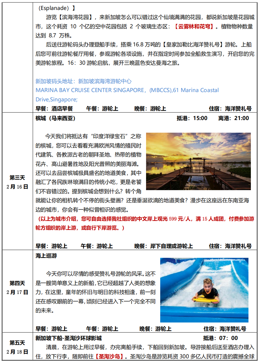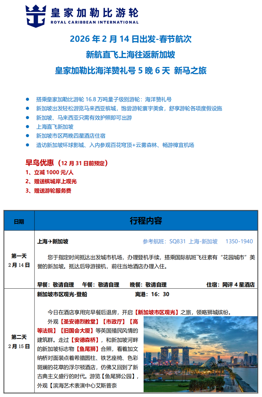 • <皇家加勒比-海洋赞礼号>新加坡、马来西亚6日 春节班期 一价全含 - QY