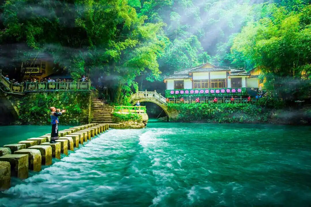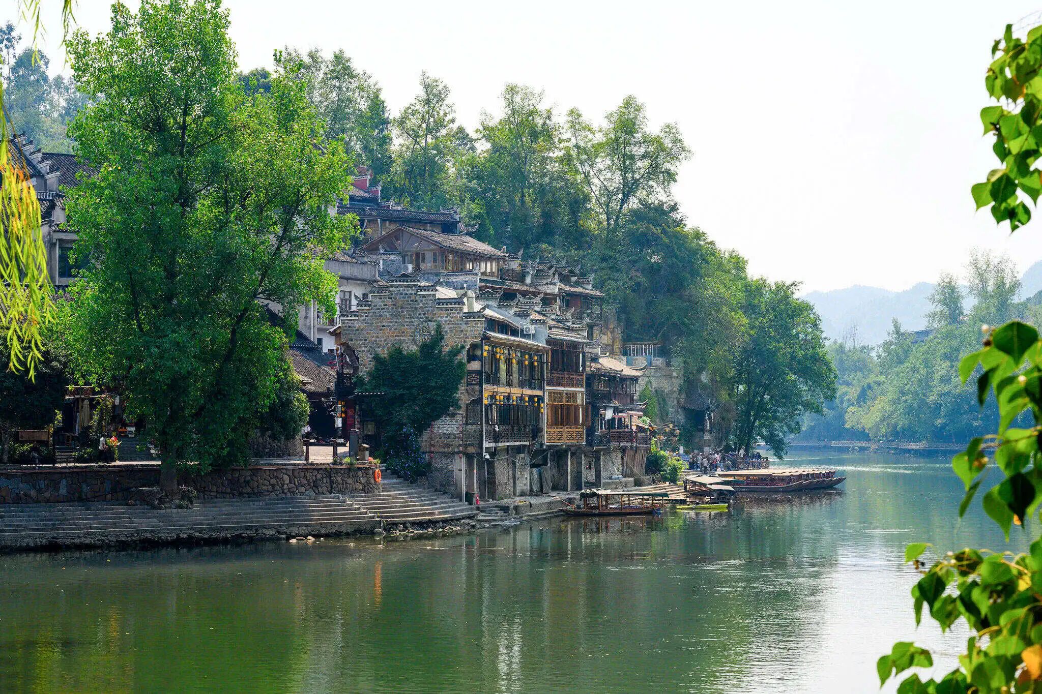 早餐后,游【茶峒古镇】(必消含拉拉渡+乌篷船游三省)地处湖南、贵州、重庆交界处,有“一脚踏三省”之称,走进沈从文笔下真正的边城,是翠翠的家乡,一个充满古老风情与浓厚民俗气息的古镇,坐落在湘西的边缘,俯瞰着沅江和酉水的交汇之处。其历史悠久,积淀着深厚的人文底蕴,独特的风光令人陶醉。《连心坝》、《边城》等影片,均在边城拍摄取景。