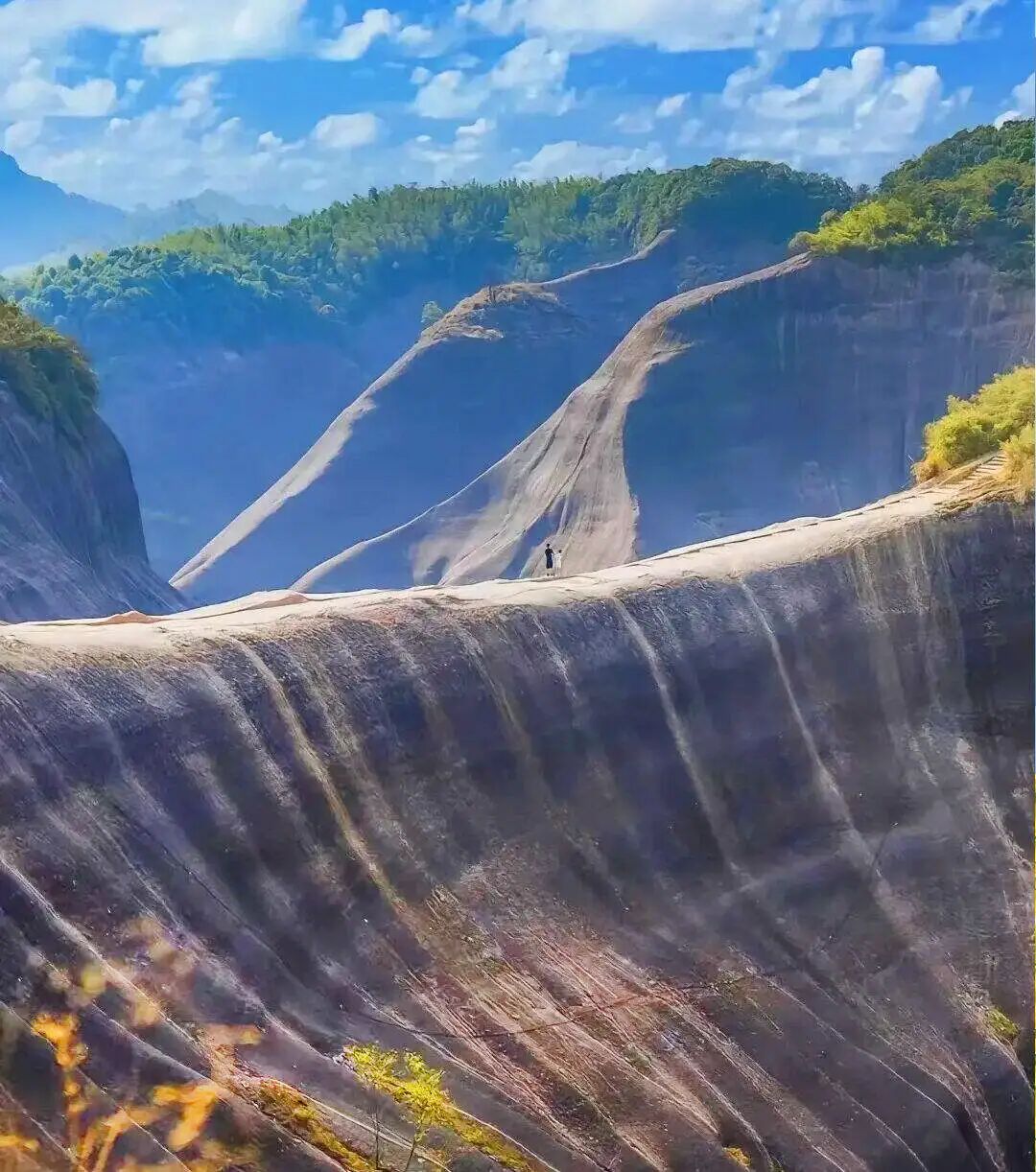 早餐后前往游览郴州的网红景点【马皇丘大峡谷】这里地势以山林为主,风景宜人,森林覆盖率达95%。山、水、泉、洞、寨、崖、穿坦俱全,是一块尚未开发的丹霞地貌处女地,其最大的特点就是丹霞地貌有一条公路犹如天路一般屹立在峡谷中间,美不胜收,甚至有点魔幻!沿着峡谷一路向前,沿途的景观不断变幻,行驶在这样的路上静静看着窗外的风景是一种极美的享受!
