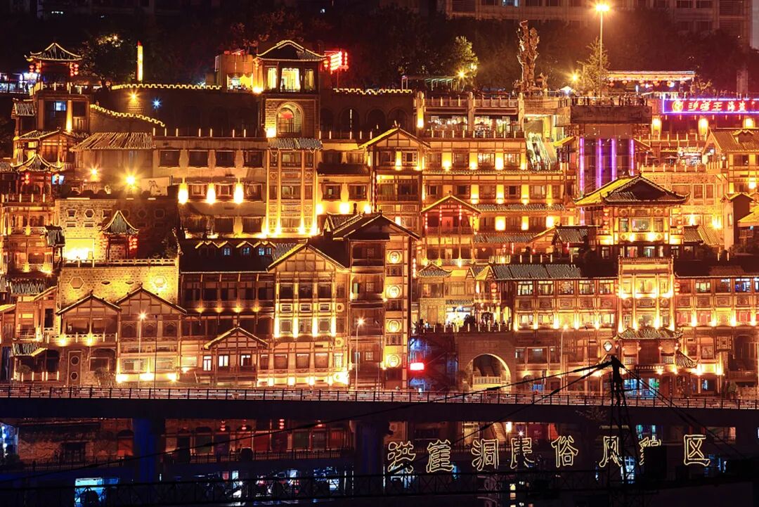 ●后来到【洪崖洞】自由参观游览,随后游览网红景点打卡地之一的【轻轨李子坝远观平台】(游览时间不低于20分钟);感受重庆十八怪之一的“轻轨楼中穿过来”被网友称为神一样的交通。轻轨乱穿梭,变身过山车。在重庆轻轨2号线的李子坝站穿越房屋,每天都会上演轻轨穿楼越壑,空中飞驰而过的神奇一幕。其中,6楼是站厅,7楼是设备层,8楼是站台层。现已经成了全国的网红景点,每天都有很多人拍轻轨穿过楼房的一瞬间。