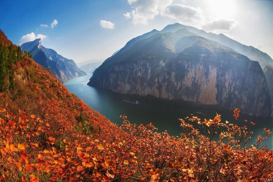 14:30-15:30    游船启航,经过长江三峡-瞿塘峡,在船上观看到以威武雄壮著称的三峡【夔门】