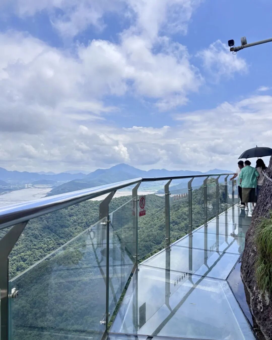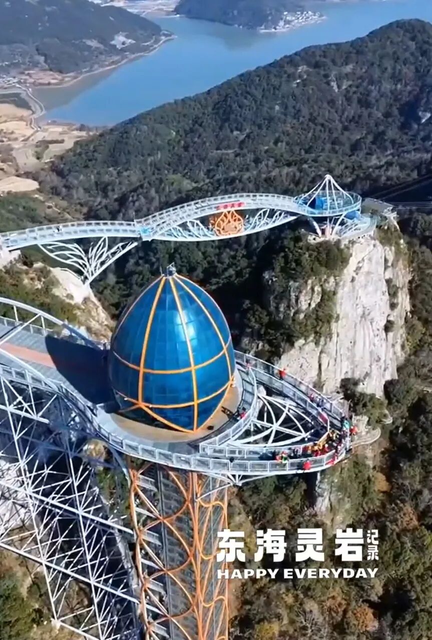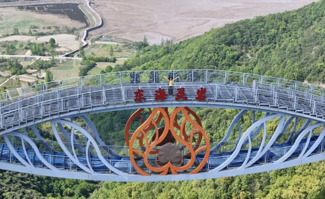 游览:『东海灵岩景区』(挂牌价125元/人不含,团队优惠价70元/人,自愿自理,包含观光套票:门票+观光车+玻璃栈道+星辰桥+灵岩天梯(单程))三面皆为丘陵和港湾,依山傍水,风景优美,山中悬崖峭壁、奇峰怪石林立;被誉为“浙东第一壮观”,自然形成的千丈岩壁,更是华东地区攀岩运动的首先之地。景区山野游乐项目众多,飞拉达、双轨滑道、玻璃漂流、丛林穿越、高空溜索等是适合当今国际潮流的户外时尚旅游项目,是中国极具特色的森林运动休闲目的地。