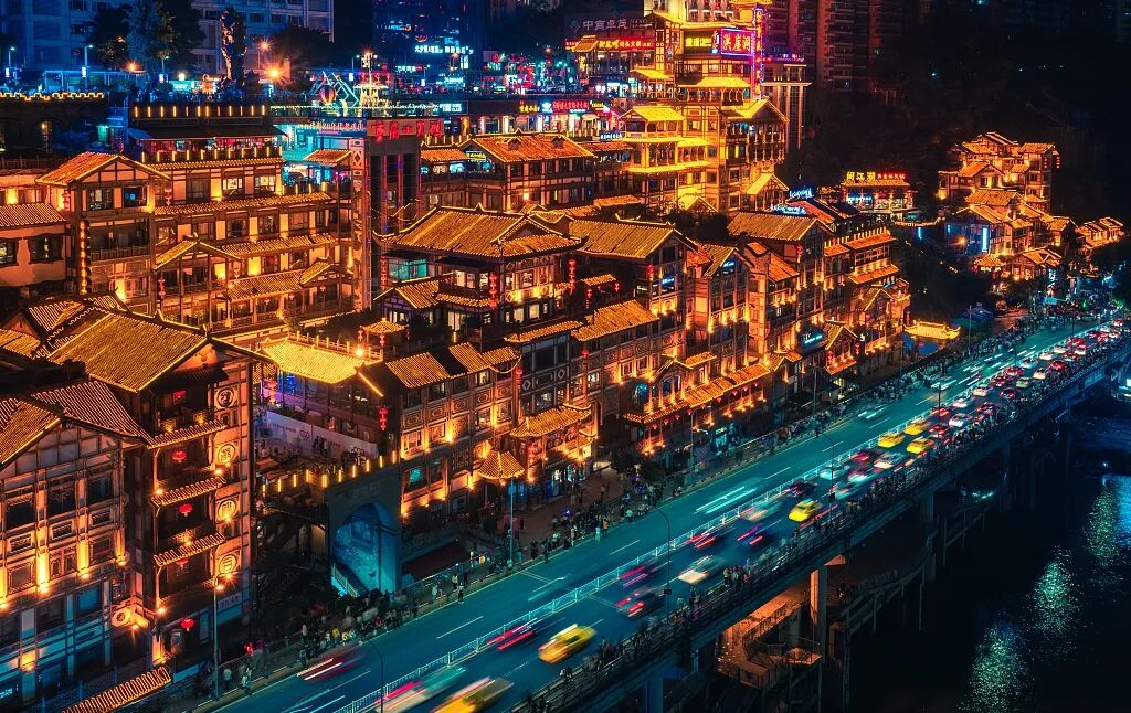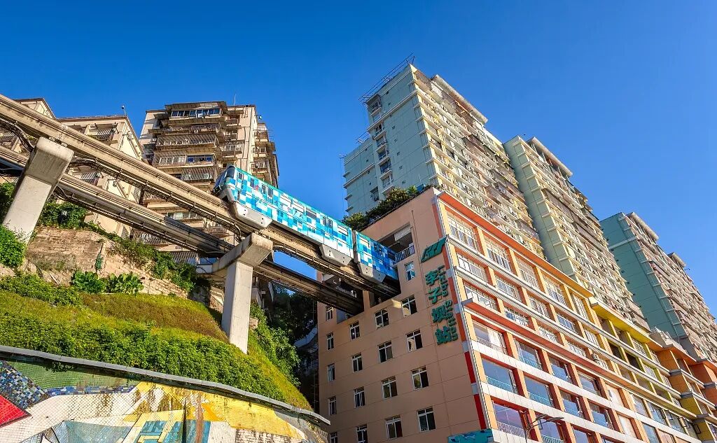 ●后来到【洪崖洞】自由参观游览,随后游览网红景点打卡地之一的【轻轨李子坝远观平台】(游览时间不低于20分钟);感受重庆十八怪之一的“轻轨楼中穿过来”被网友称为神一样的交通。轻轨乱穿梭,变身过山车。在重庆轻轨2号线的李子坝站穿越房屋,每天都会上演轻轨穿楼越壑,空中飞驰而过的神奇一幕。其中,6楼是站厅,7楼是设备层,8楼是站台层。现已经成了全国的网红景点,每天都有很多人拍轻轨穿过楼房的一瞬间。