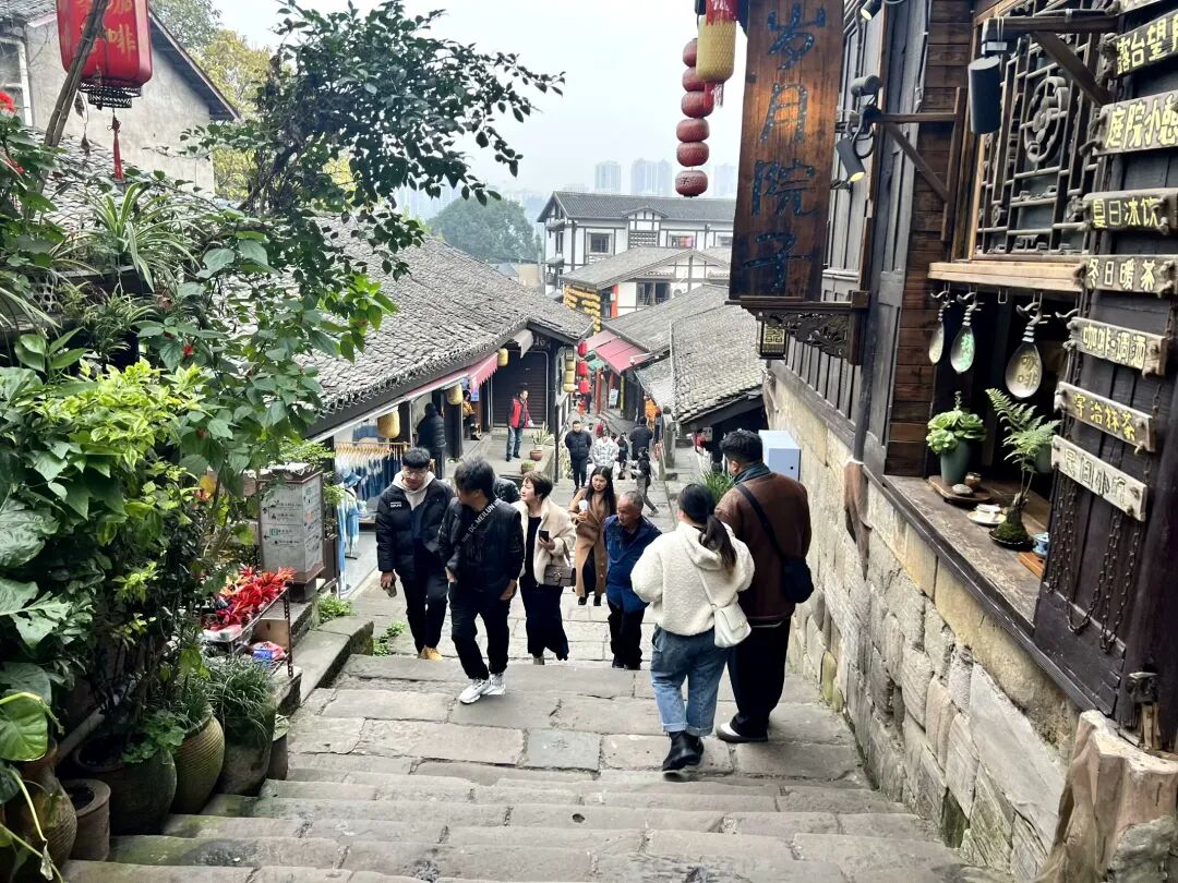 ●后游览山城【第三步道】,一条坡度较高的历史古道。如今维护和保持了老山城的行走爬山的本色,增加了现代元素,将历史文化与现代景观,观光串联在一起,属重庆地方特色的独有旅游观光品牌。