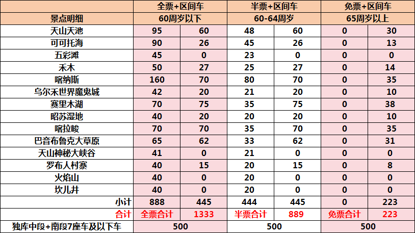 独库公路中段+南段换5-7座车费用:500元/人(大小同价),当地现付导游;