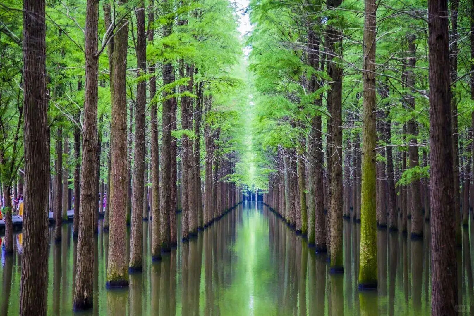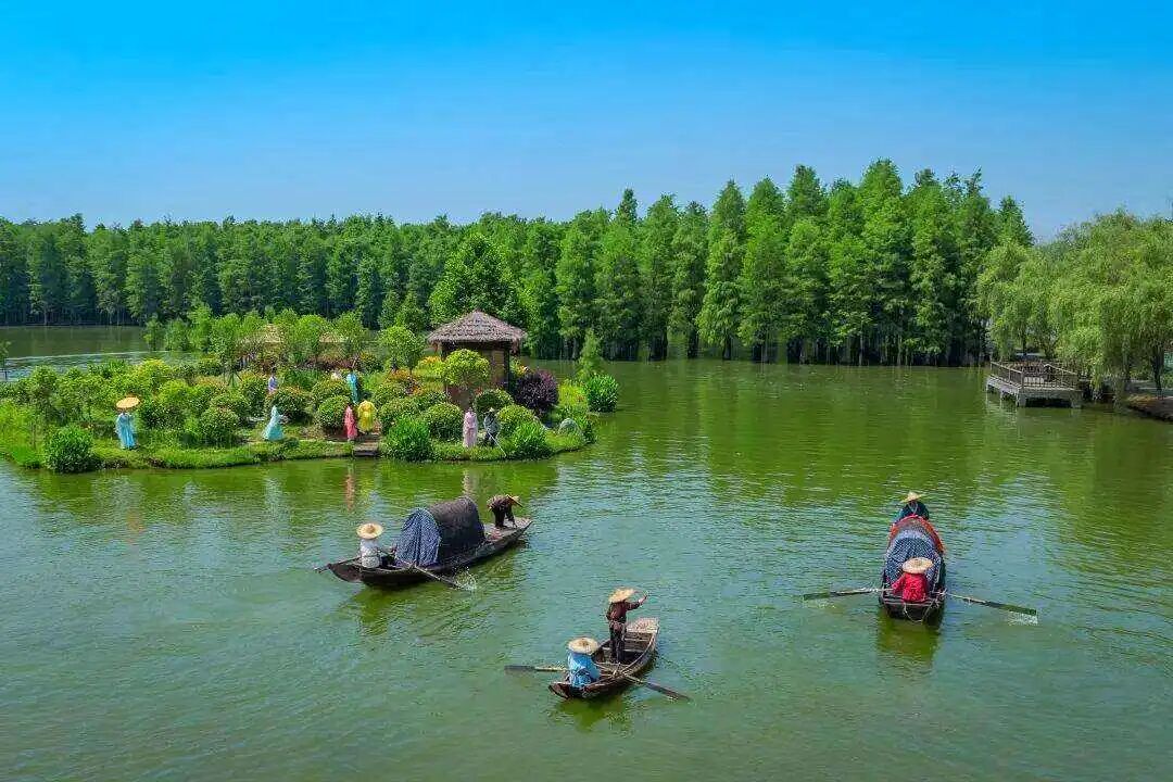 ◈早餐后,乘车前往约42公里,0.5小时车程的【梦里水乡】(游览时间约1.5小时),位于仙桃市赵西垸林场,是江汉平原地区别具特色的乡村旅游综合体。景区以乡愁为主题,涵盖包括荷塘村、水上花海、乡野湿地公园、乡隐房车营地等多个自然人文景观。景区庞大的水利资源使得这里成为一片天然大湿地,湿地中大大小小共有12座岛屿分散开来,岛上分别种有水杉、牡丹、丁香、桃花、紫薇、玫瑰等数十种花草,它们可在不同季节呈现出不同美的美景。其中,水杉种植面积较大,一棵棵高耸入云、清秀挺拔,春夏为翠绿色,而到了秋季就变成了耀眼的红色,光彩夺目,吸引眼球。