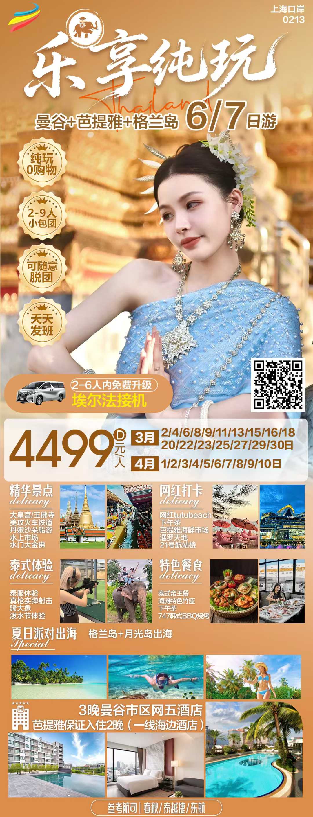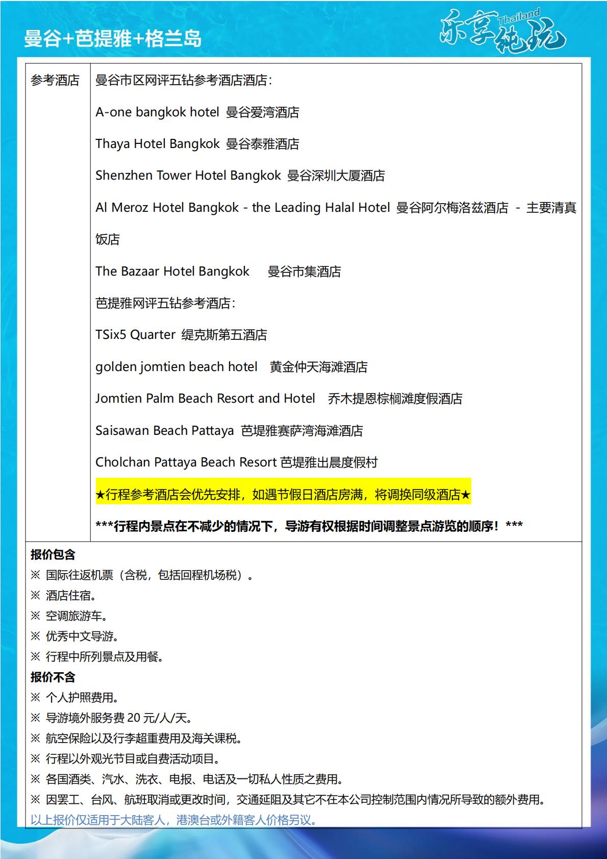 • <乐享纯玩>曼谷、芭提雅、格兰岛6/7日 2-9人小包团 一线海景5钻酒店 纯玩0购物- HT