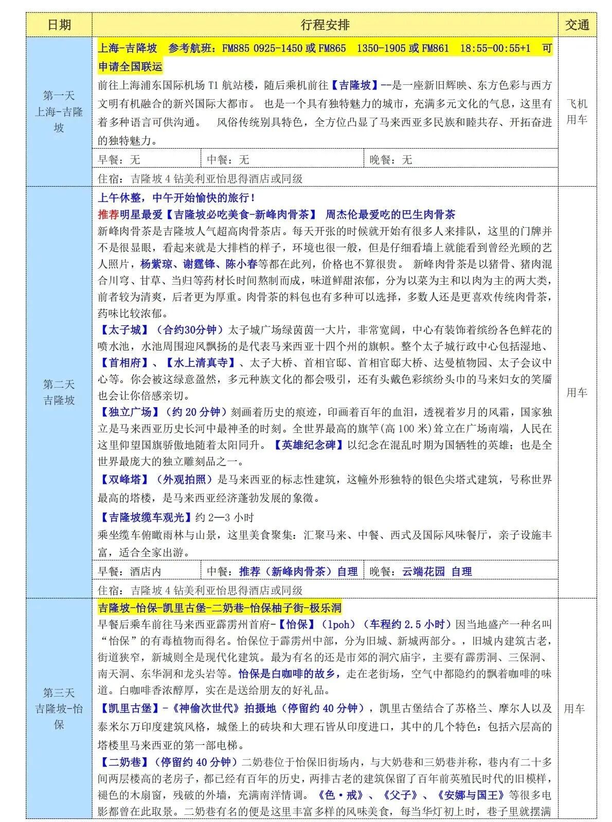 槟城、怡保、吉隆坡、......