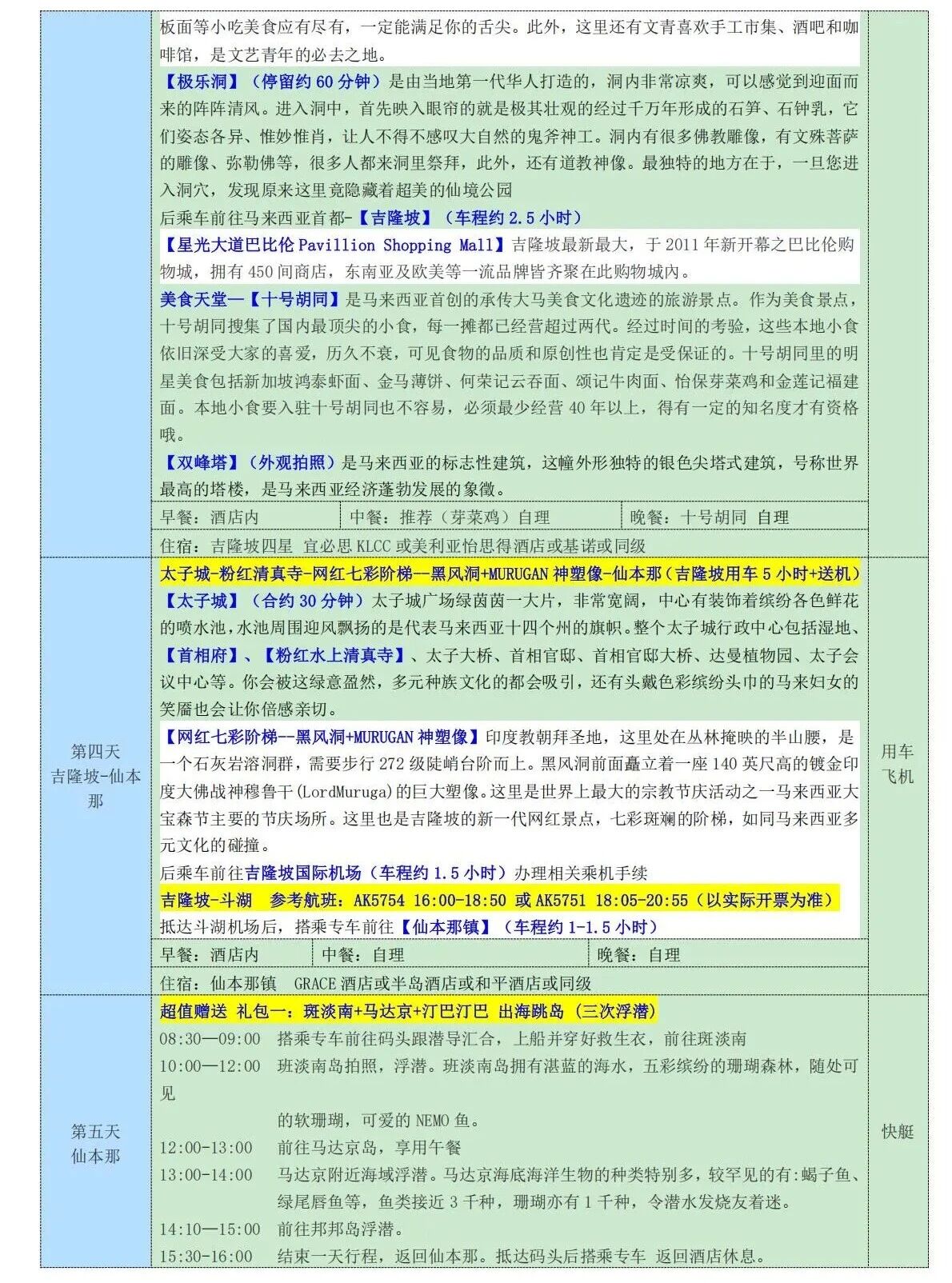 A款:槟城/吉隆坡四星酒店+3N仙本那镇上酒店