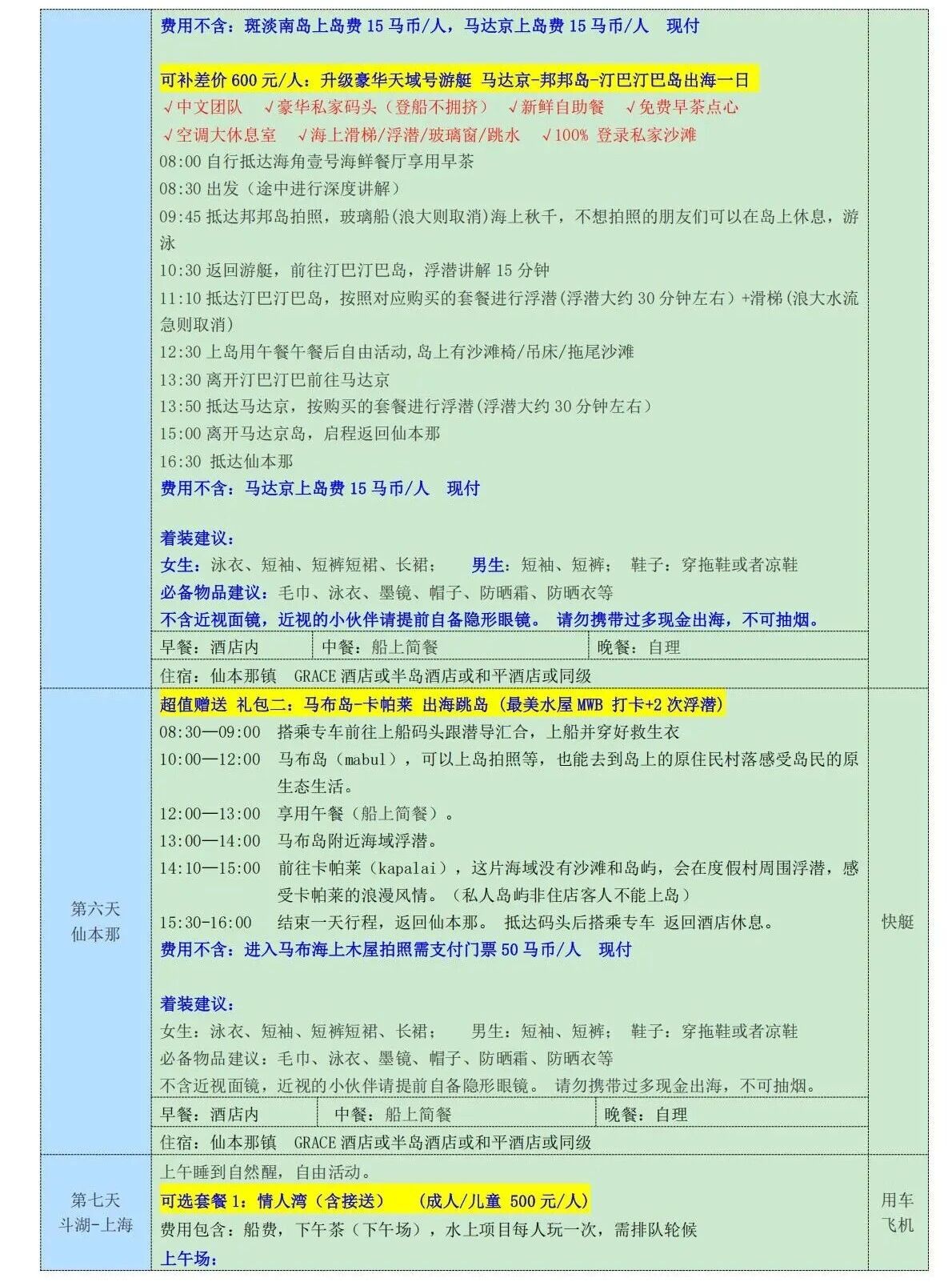 上海直飞:上海-槟城 HO1365 17:10-23:00斗湖-上海 HO1362 21:00-02:00+1多款住宿任选 适配不同旅行想象A款:槟城/吉隆坡四星酒店+3N仙本那镇上酒店B款:槟城/吉隆坡四星酒店+2N仙本那镇上酒店+1N网红水屋体验 C款:槟城/吉隆坡四星酒店+1N仙本那镇上酒店+2N奢华水屋体验