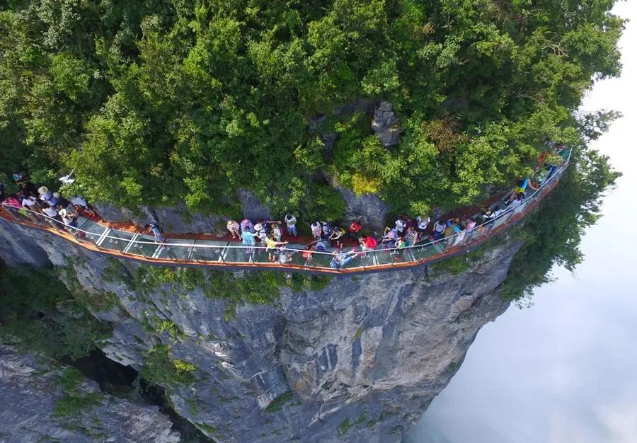 【天门山玻璃栈道】玻璃栈道是张家界天门山景区继悬于峭壁之上的鬼谷栈道、凭空伸出的玻璃眺望台、横跨峡谷的木质吊桥后打造的又一试胆力作。
