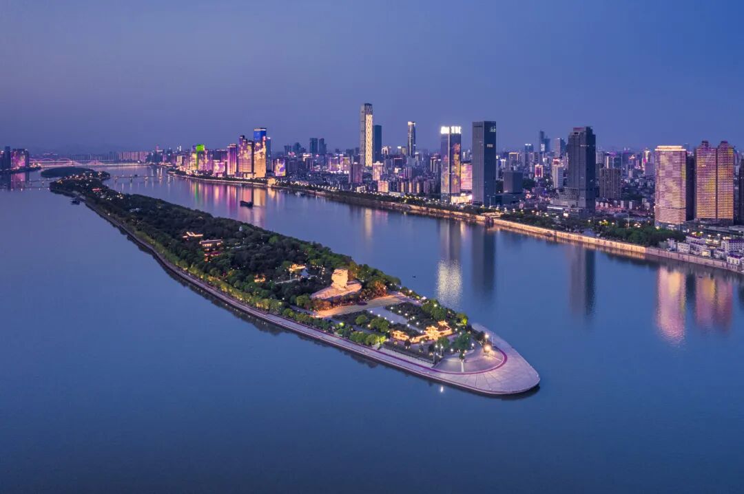 洲上绿树成荫,与湘江碧波相映成趣;右岸岳麓山青山如黛,山峦起伏;左岸五一商圈高楼林立,现代都市的繁华尽收眼底。它让现代与自然在这里完美交融,碰撞出了别样的火花。当年,毛泽东曾在这里沉思、漫步,“指点江山,挥斥方遒”,他的足迹仿佛还留在橘子洲的每一个角落。那份豪情壮志,与这片土地融为一体,让人不禁心生敬意。