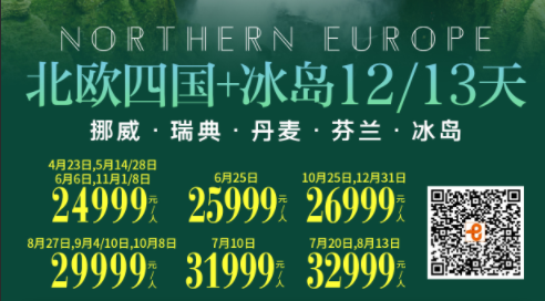 【4-12月】4钻惠品-北欧四国+冰岛 10晚12 日-挪威+瑞典+丹麦+芬兰 FJY