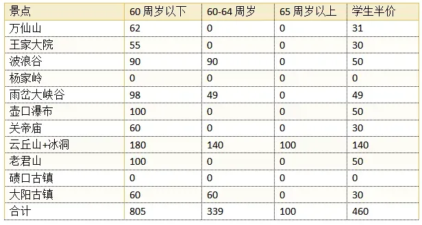开启我们的行程 第一天 上海--郑州 住宿:火车上 早餐 午餐 晚餐 自理 自理 自理 上海乘火车前往河南省会郑州! 第二天 郑州--老君山 住宿:栾川及周边 早餐 午餐 晚餐 自理 自理 团餐 接团后前往云端仙境——老君山 【老君山】相传东周道家始祖老子曾在此山隐居修炼,故名老君山,是伏牛山主峰。海拔两千多米,有官殿及庙宇群落,古时这里被视为道教圣地。 第三天 栾川-关帝庙-云丘山 住宿:云丘山及周边 早餐 午餐 晚餐 酒店含早 自理 自理 早餐后前往武庙之祖——解州关帝庙 【关帝庙】关帝庙为武庙之祖,地处山西运城市解州镇西关。是全国重点文物保护单位、国家4A级旅游景区。北靠盐池,面对中条。 【云丘山】:素有“姑射山最秀之峰巅”“河汾第一名胜”的美誉。特殊的喀斯特地貌和石山森林环境形成了各种奇峰异景,可谓是“千峰竞秀,万壑峥嵘”。 【塔尔坡古村】:被称为“千年民居建筑的活化石”,整个村落依山傍水,古树掩映,整体呈叠地式排列,建筑多为石砌拱顶的窑洞构建,也保有部分依山挖掘的石洞、土洞,进入塔尔坡古村,可观看皮影戏、唢呐表演,了解当地的婚俗、传统的手工艺,更可亲身体验磨豆腐、蒸花馍,当地的村民还可以手把手教大家表演皮影戏。 【云丘山冰洞群】:世界三大冰洞奇观之一,也是目前国内发现规模最大的天然冰洞群,属于制冷机制最为复杂的地热负异常型冰洞,全球权威专家至今无法破解其形成原理。因其成因复杂、规模最大、365天全年都有冰,云丘山冰洞群也成为最具科研价值和观赏价值的天然冰洞群。 当天行程结束,安排住宿酒店。 第四天 云丘山-壶口-甘泉 住宿:甘泉及周边 早餐 午餐 晚餐 酒店含早 自理 团餐 【黄河壶口瀑布】黄河壶口瀑布是黄河上的著名瀑布,东濒山西省临汾市吉县壶口镇,西临陕西省延安市宜川县壶口乡,距太原大约5到6个小时车程,距西安大约2个多小时车程。黄河至此两岸石壁峭立,河口收束狭如壶口,故名壶口瀑布。瀑布落差9米,其奔腾汹涌的气势被视为中华民族精神的重要象征。 后乘车前往参观 中国版的“羚羊谷”——雨岔大峡谷 【雨岔大峡谷】雨岔大峡谷位于延安市甘泉县雨岔村,亿万年前,陕北发生过强烈的地震,使一座黄土大山分出一条裂缝,又经过经年累月的风侵雨蚀,慢慢形成今天的雨岔大峡谷,它也被誉为中国的“羚羊大峡谷”。 第五天 甘泉-延安-波浪谷 住宿:波浪谷及周边 早餐 午餐 晚餐 酒店含早 自理 自理 早餐后乘车赴革命圣地红色延安,抵达后远观宝塔山,后参观革命圣地枣园或杨家岭; 【杨家岭】:杨家岭位于陕西省延安市城区西北2公里处,是中共中央领导在1938年11月至1947年3月期间的住处。当年这里还曾进行过轰轰烈烈的大生产运动、整风运动 后出发前波浪谷 【靖边波浪谷】靖边波浪谷位于距靖边县东南22公里处的龙洲乡闫家寨子,从靖3203边县城出发,约需半小时车程。靖边波浪谷的岩石学名"砒砂岩",成于古生代二叠纪和中生代三叠纪、侏罗纪、白垩纪之间,这是地球历史中地质最活跃、生物最繁茂、动物最庞大的时代。波浪谷自然风光神奇秀丽,独特而壮美。 第六天 靖边-碛口古镇-平遥 住宿:平遥及周边 早餐 午餐 晚餐 酒店含早 自理 团餐 【碛口古镇】“九曲黄河第一镇”,这里有着灿烂的文化,一批具有黄土高原建筑特色的晋商"老宅院"。古镇依然古色古香,脚下是石板路,两边是高圪台,房檐连着房檐,店铺挨着店铺,到处是文化,遍地是艺术。 后游览冠云牛肉厂。 [平遥冠云牛肉厂】吃冠云牛肉,赏平遥古城!古汉时就有“卖刀买犊,卖刃买牛,游刃有余”的对牛肉加工的描述,而风味独特、久负盛名的平遥牛肉早在明清时代就已远销亚洲各国,史载清末,慈禧太后途经平遥,享用平遥牛肉后,闻其香而提其神,品其味而解其困,故将其定为皇宫贡品。新中国成立后,1956年在全国食品名产展览会上,平遥牛肉被评为“全国名产”,随着著名歌唱家郭兰英的一曲“夸土产”,平遥牛肉更是驰名华夏,香飘海内外。 后前往历史文化名城——平遥古城 【平遥古城】(夜游自由活动)畅游两百年前中国的华尔街---明清一条街,可自行游览平遥古城,欣赏城墙、街道、民居、店铺等建筑,基本上保持着原有的古城格局这里可以找到不少晋商遗下的古玩珍藏;夜幕降临,万家灯火让古城褪去了白日的喧嚣,变得古香古色绚丽多姿。四合院里,明清街上,不时有拿着长枪短炮的摄影爱好者徜徉在其中,这座有着2700多年历史的古城再次焕发出独特的魅力。平遥古城观赏夜景,畅游云路民俗风情街,迷人的灯光点缀在古色古香的明清建筑上,是现代文明和历史文化的融合! 第七天 平遥-王家-大阳古镇-晋城 住宿:万仙山/晋城 早餐 午餐 晚餐 酒店含早 自理 团餐 早餐后参观 王家大院 大阳古镇打铁花表演 【王家大院】(游览约2小时) 王家大院历经300年修建而成,气势和规模在晋商宅院里首屈一指,雕刻艺术精湛,空间格局大气,素有“王家归来不看院”之说。王家大院由高家崖、红门堡两个相对封闭的院落组成,之间由长桥腾空连起。高家崖是封闭式城堡建筑,承袭了中国古代前堂后室结构,到处可见精美的雕刻艺术。红门堡与高家崖东西相望,堡内石雕融南北风情于一体,是清代雕刻艺术的典范。 【大阳古镇】古有阳阿之剑,可陆断牛马,水截鸿雁”,丰富的矿藏资源使大阳成为我