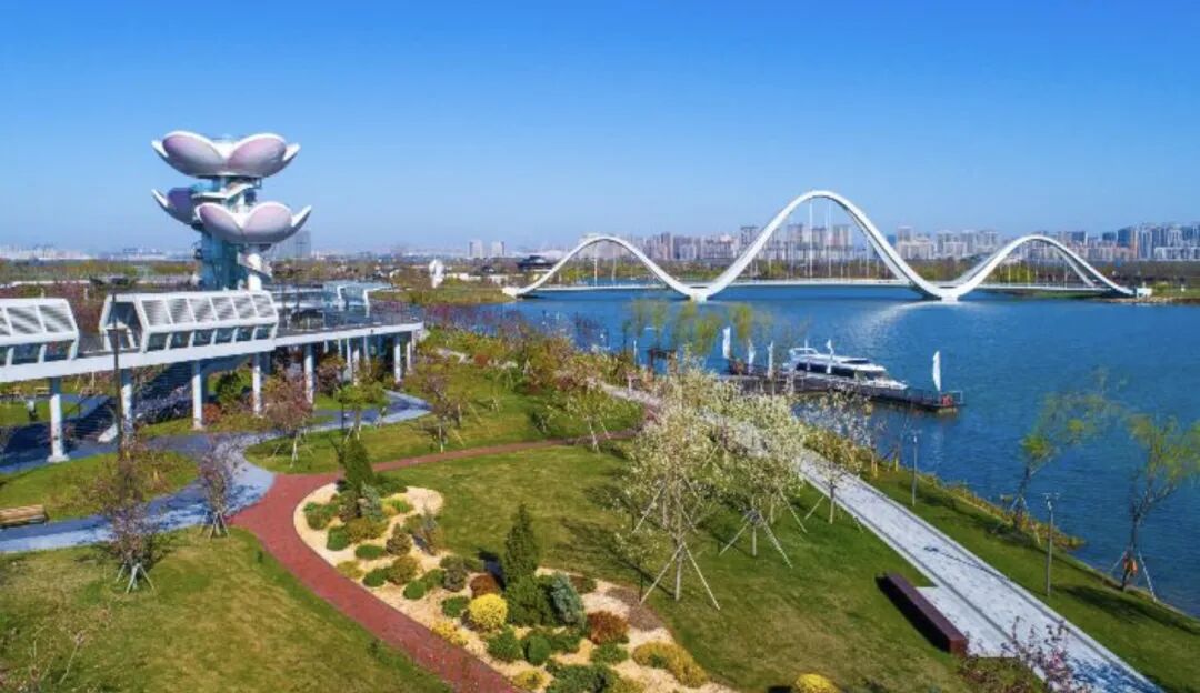 前往前往【中华海棠园】(门票已含、游船、景区电瓶车、三叶观光塔20/人自愿自理)位于江苏省盐城市盐南高新区南海未来城中心胜利路润海路,占地2500亩,海棠园与国内知名海棠研究机构合作,进行海棠新品种生产与增值化技术研发,园内已栽种120多个品种、近15万株海棠树。[3]是全国规模最大、品种最全、观赏期最长的海棠主题公园之一。公园内乔木占80%,园内负氧离子浓度高达每立方厘米4000个,[4]搭配种植200多种耐盐碱植物,公园整体布局呈“五瓣莲芯、一湖绕环”的半月形。