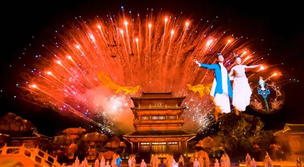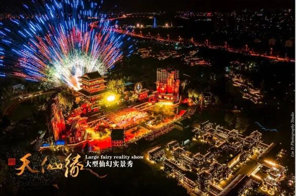 晚餐后观看大型实景秀《天仙缘或寻仙缘》(3月31日之前赠送观看,4月1日开始自愿自理60元/人,重要节假日自愿自理80元/人,满20人发车)如因天气或者其他不可控因素,演出取消,门票不退,作为我市文化名片之一,“董永传说”于2006年6月经国务院批准列入首批国家级非物质文化遗产保护名录。此次演出以董永与七仙女的爱情传说为核心,时长40多分钟,磅礴恢弘的剧情内容,美轮美奂的视觉场景,演绎天仙情缘。