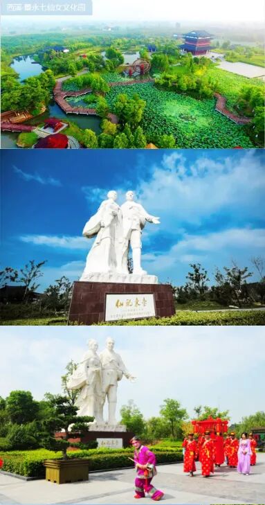早餐后前往国家4A级旅游景区--【天仙缘景区·董永七仙女文化园】(门票已含),这里的建筑为汉唐风格,建有董孝贤祠、古戏台、天仙茶馆、十八里亭、老槐树、凤凰池、丝缫井等24个景点。走进文化园《董永与七仙女》,双人站像,首先映入眼帘,雕像高6.8米,台高2米,是由中国美术学院潘锡柔教授设计的。汉白玉雕刻的董永七仙女雕塑神形兼备,在蓝天白云下,默默演绎着传颂千年的爱情佳话。当记忆重回董永七仙女的爱情故事,不经意间,仿佛又邂逅那个白衣飘飘的仙子。千年古镇西溪是古东邑佛教和两淮海盐文化的发源地,是国家级非物质文化遗产名录“董永传说”的发祥地。走进董永七仙女文化园,走进一个梦幻的汉唐,走进一段七仙女的故事。