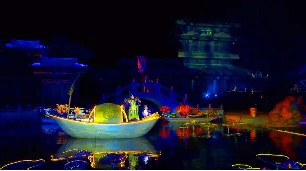 实景秀利用董永七仙女文化园的亭台楼阁、河水、植被等实景为基础,苍穹星空为顶,云窗雾阁为幕,打造浑然天成的水边舞台和空中立体舞台的视觉效果。并结合灯光秀、威亚秀、网幕、水幕、花灯船,将舞台剧、音乐、舞蹈等表演艺术结合在一起,进行综合艺术呈现,水、陆、空全方位打造出如入仙境的天上人间。