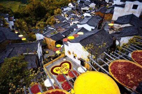 乘观光索道上山,游览以“晒秋”闻名的婺源篁岭民俗景区,被誉为中国最美符号,周边梯田覆叠白云环绕。春季千亩梯田油菜花,漫山遍野的新绿、嫩黄,震撼视觉冲击。【天街】民居围绕水口呈扇形梯状错落排布,U形村落带您体验南方的“布达拉宫”。徽式商铺林立,前店后坊,一幅流动的缩写版“清明上河图”。家家户户屋顶晒盘云集,绘就出一幅“晒秋人家”风情画。