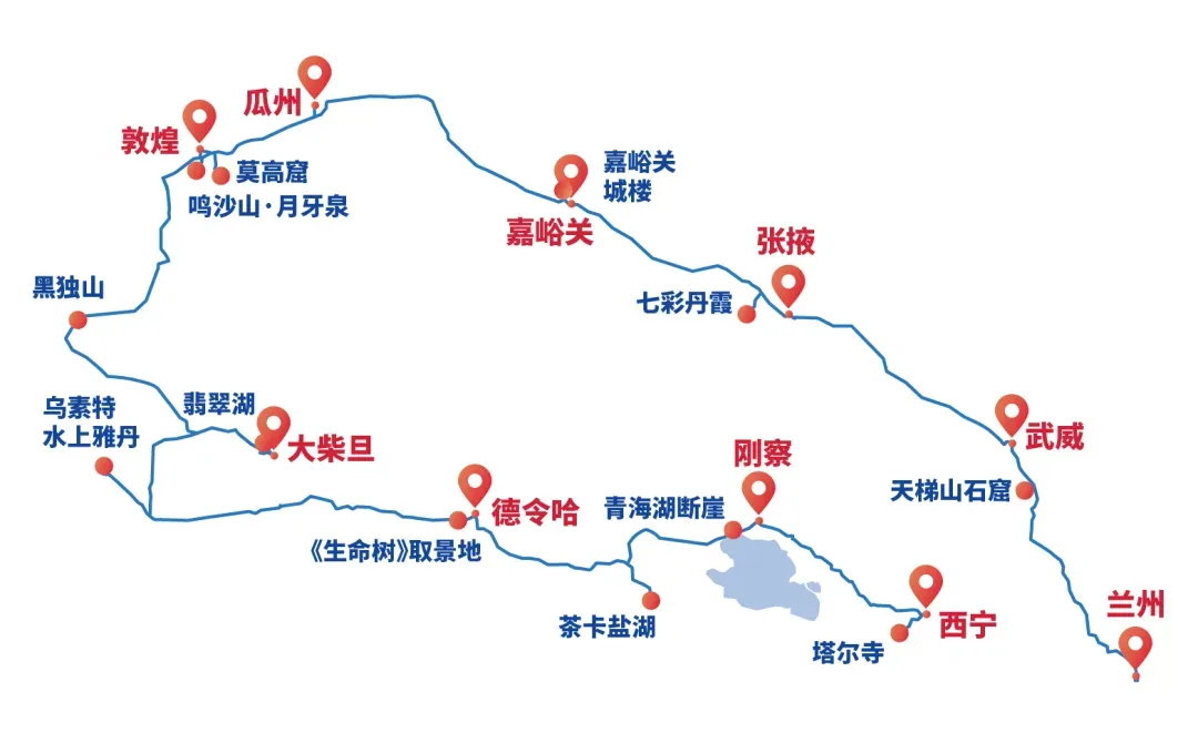 嘉峪关-张掖七彩丹霞(约220km,3h)-武威(约270km,3h)