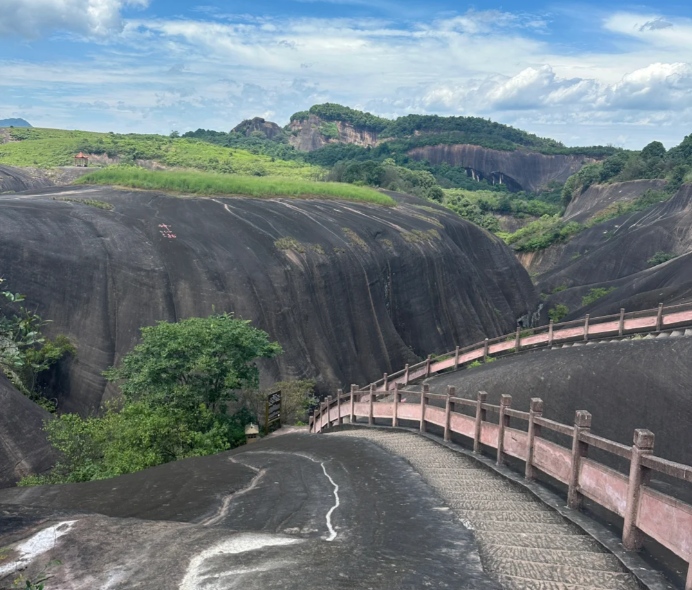 餐后前往游览【苏仙岭】(游览约2.5小时)因苏仙神奇、美丽的传说而驰名海内外,岭上有白鹿洞、升仙石、望母松等“仙”迹,自然山水风光久负盛名。由秦少游作词、苏东坡作跋、米芾书写的《踏莎行·郴州旅舍》被篆刻在苏仙岭的岩壁上,史称“三绝碑”。
