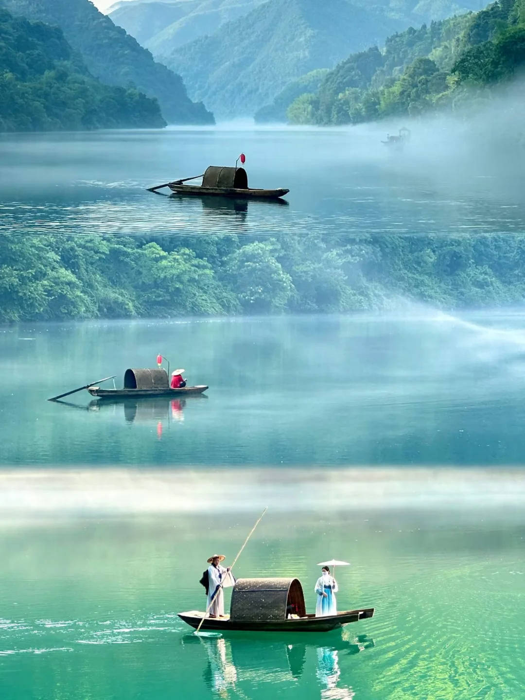 早餐后,乘车前往游览【5A东江湖风景区】(门票已含,含摄影船,游览约3小时,)乘坐景区车前往东江湖景区2号桥,徒步醉美【小东江】景区段,偶遇雾漫美景。东江的雾如梦似幻,缥缈不定,风景秀丽!(注:该景色最佳观赏时间为每年4-10月清晨及傍晚时分,为自然景观,受一定的天气影响。)这里长年两岸峰峦叠翠,湖面水汽蒸腾,云雾缭绕,神秘绮丽,堪称中华一绝。小东江的水质达到国家一级饮用水标准,干净、清澈的湖水,直接渗透我们的心灵。
